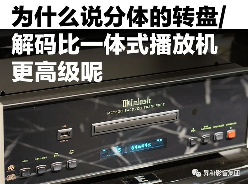 为什么说分体的转盘/解码比一体式播放机更高级呢?因为在一体式SACD/CD播放机里,负责光盘读取的转盘系统是一个高速运转的机械装置,即使再好的避震技术,也无法完全避免产生震动,从而会对后续的音频线路带来一定程度的干扰。虽然这些震动干扰属于微观的范畴,但对于处理高精度弱信号的DAC芯片、电解电容等元件而言,假如震动触发了共振(因此避震配件对播放机和转盘而言有非常显著的效果),那干扰的程度就会呈指数式的增加,最终的结果是显著劣化了音质表现。