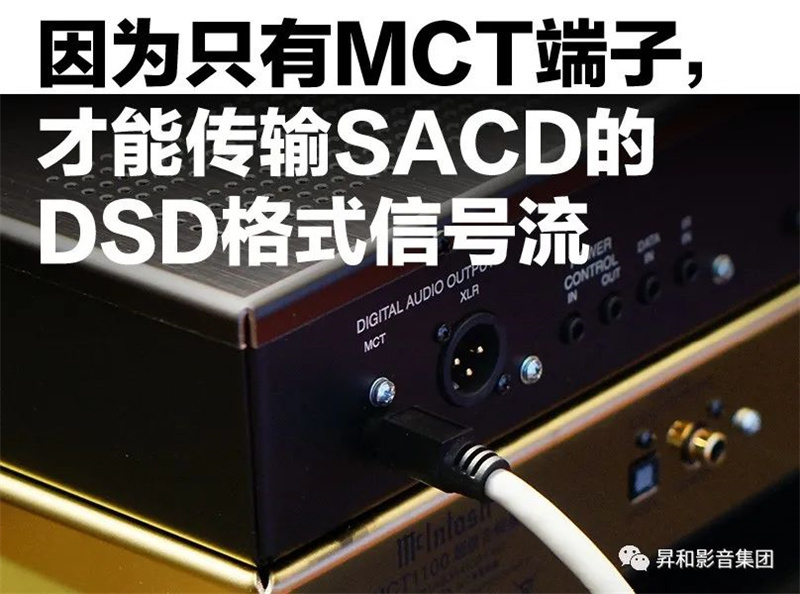 那为什么要用MCT端子?而不是更常见的同轴或者光纤端子呢?这是因为只有MCT端子,才能传输SACD的DSD格式信号流,而其它端子都只能传输CD的PCM格式,因此连接MCT端子才能发挥SACD的最佳效果。索尼和飞利浦在90年代初发布SACD的时候,设计了限制数据经过常规数字端口输出的机制(目的是防止这种高格式数据被复制),因此只有获得授权的品牌,才能用特定的方式来传输DSD格式信号,McIntosh麦景图专研的MCT界面就是一个完善的方案。当播放SACD的时候,功放/前级的显示屏将显示DSD64的字样,表示DAC模块已经以DSD方式解码,带来最佳的高格式唱片重播体验,并让你清楚掌握唱片的格式状态。