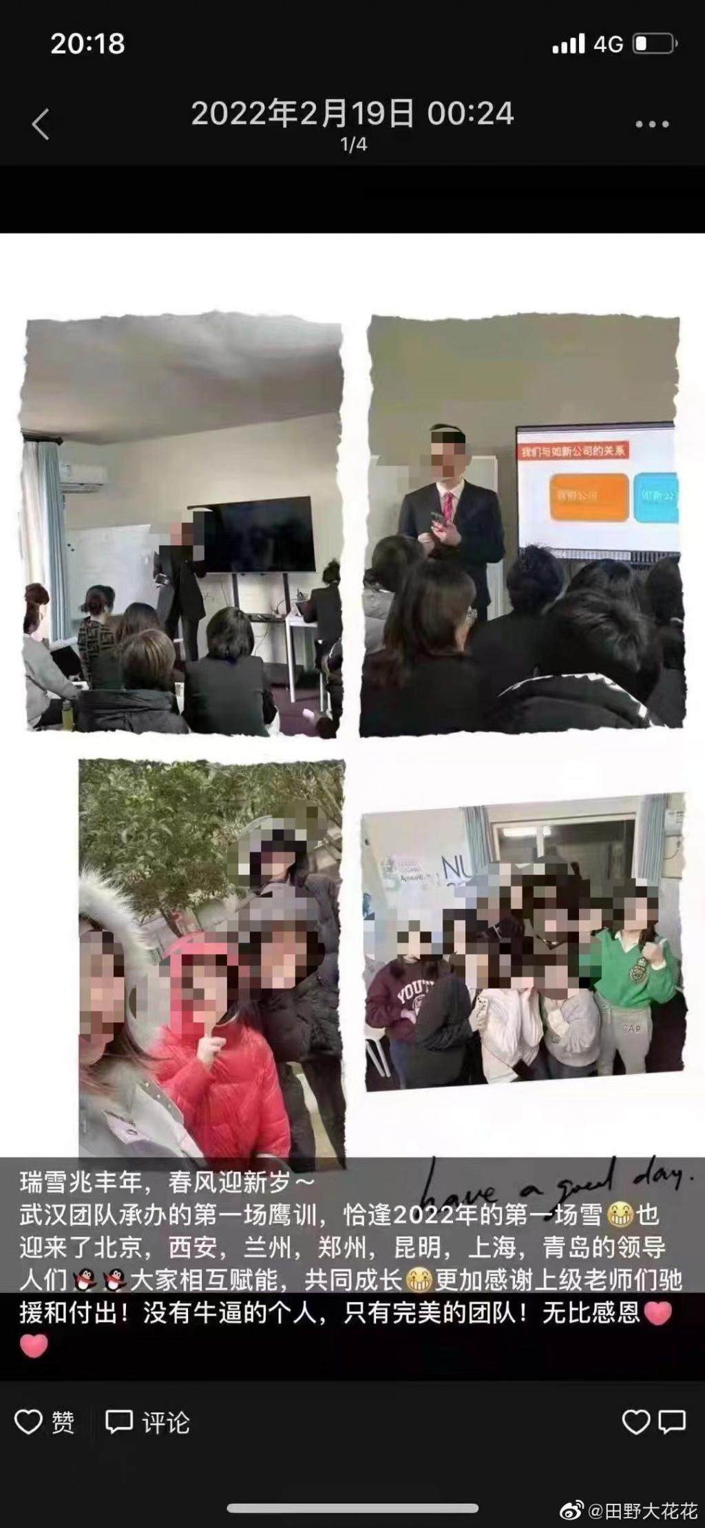 △ 参加培训的个人朋友圈截图,图源水印2 月 23 日,如新中国通过官方微博 @如新 V 人生回应称,经初步调查发现,此次活动为经销商自行组织,未向公司申请报备,违反公司的规章制度。对于此次突发事件,如新中国公司已第一时间采取以下应对措施:暂停湖北省所有的线下培训;湖北分公司已暂停营业,全面消杀。