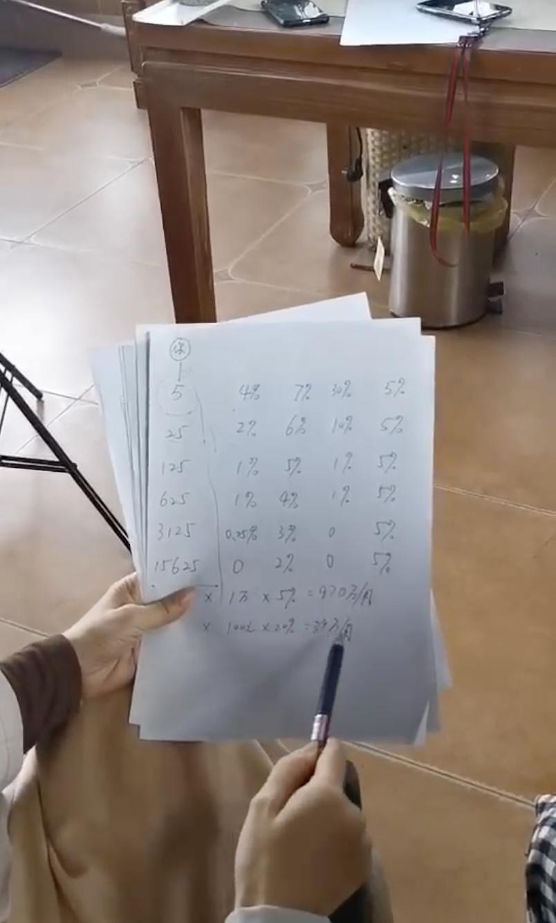 视频中,这位导师在向另一位中年女士介绍称:" 如新有一个制度,是保我们后半生老了以后还能有现金流的制度。" 该导师解释,接下来的 10 年里,只要能发展 5 个人,这 5 个人身后也会有 5 个人,团队就变成 25 个了;25 个人每人身后有 5 个人的话,团队就变成 125 个……这样下去,到第六代就已经 15000 多人。" 这些都是你的人际关系网,你不用会被别人用的。而且如新的制度是一个大的三角形,而各家直销公司的制度都是倒三角,是越来越少的。"