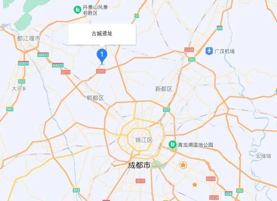 这座遗址位于郫都区正北方,刚好在二绕外侧,离都江堰和广汉不远。为什么要提这两个点?因为它和古蜀人的活动轨迹息息相关,这个我后面会慢慢讲到。