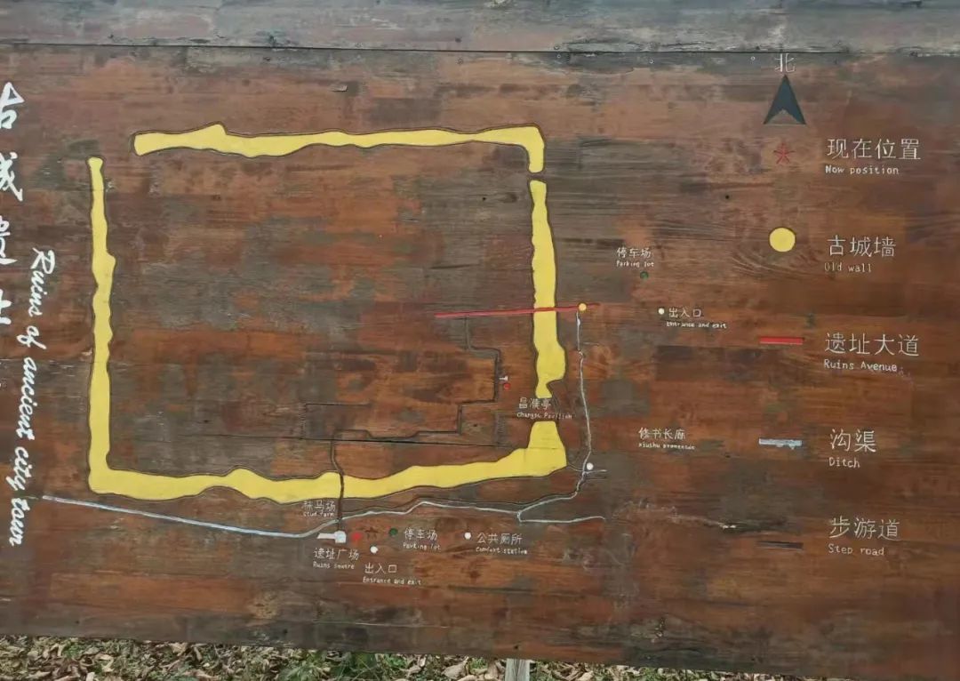 遗址面积很大,走完很累,可以选取其中的南城墙重点观看。如图: