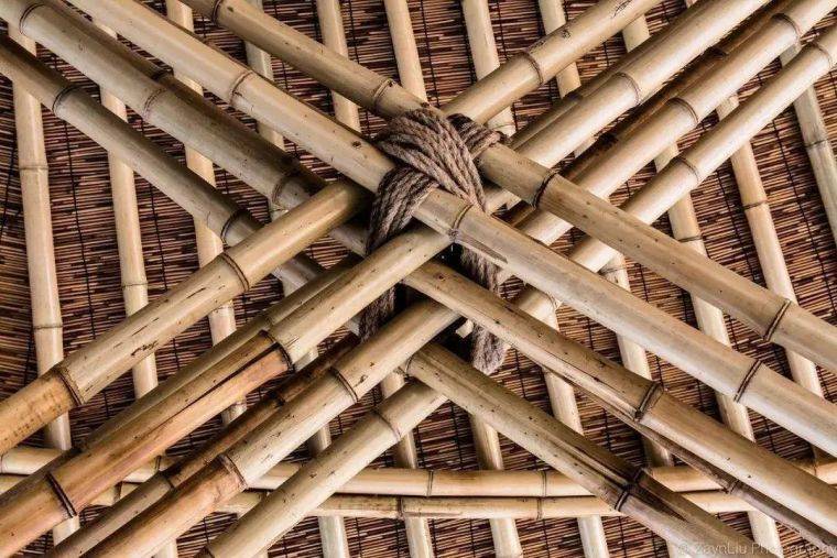 但是,早在在古代,人类对工具的使用尚不成熟时,古人就已会选用柔韧性极好的藤条,将原木/原竹搭接后绑扎,形成了早期的木竹结构建筑和建材。这也是竹木结构最原始的连接形式——绑扎连接。