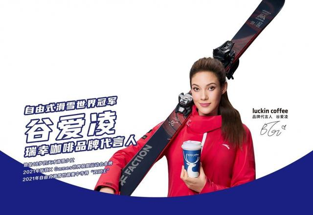 如今,谷爱凌的面孔随处可见。瑞幸咖啡店门口站着她的人形立牌,视频APP开屏广告是她驾驶着凯迪拉克,电子弹窗也有她的笑容……