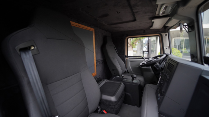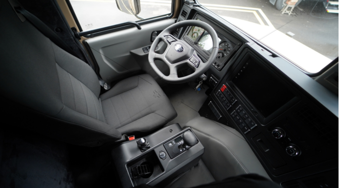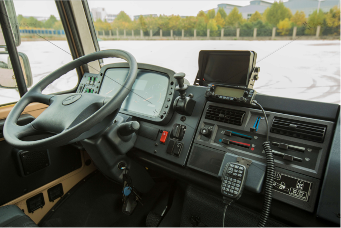 驾驶室的布局也是单排双座两门结构,按键主要集中于主驾驶位左右两侧,方便驾驶员操作。主副驾驶座都是防水纤维面料,可以抵御野外的泥沙侵袭。两个座位都选用了空气悬挂,可以在颠簸路况中丰富乘坐舒适度。