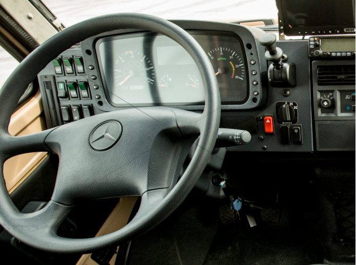 “撼路者”的内饰造型让你无法想象它就是一款奔驰的产品,除了4辐方向盘上硕大的奔驰标识外,它的内饰设计跟豪华可差了很远,简单古朴的设计,让我感觉它诞生于上世纪八九十年代,其实它是2003年奔驰推出的车型。