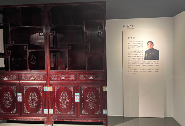 刘更生1983年就进入到龙顺成。刘更生既有家传绝学,又有名师孙月楼指导,爱学敬业,很快脱颖而出,成为龙顺成第五代传承人的杰出代表。博物馆还收藏有一张1986年刘更生获得“先进职工”的荣誉证书。经过二十余年的艰苦磨砺,刘更生的技艺已是炉火纯青。2016年“刘更生大师工作室成立”,制作的金丝楠鸾凤顶箱柜、金丝楠雕龙大柜、紫檀耕织图罗汉床、紫檀珐琅床等家具庄重雅致、美轮美奂,成为重器经典。