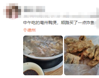“沿着省道分布,比汽配维修还密,一下高速进了德州,看到亳州鸭煲的招牌,我就知道该吃饭了。”