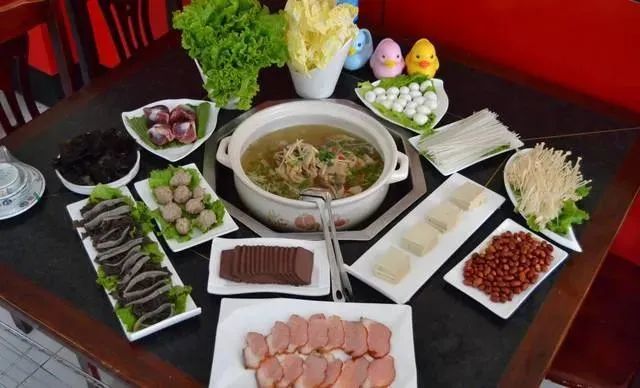 点餐时可以选择锅底的殷实程度,从半只鸭到一对鸭,除此之外,还有鸭血、鸭肠、鸭胗、鸭腿等鸭货,基本你在火锅店能吃到什么涮菜,在鸭煲店内都可以尝试。