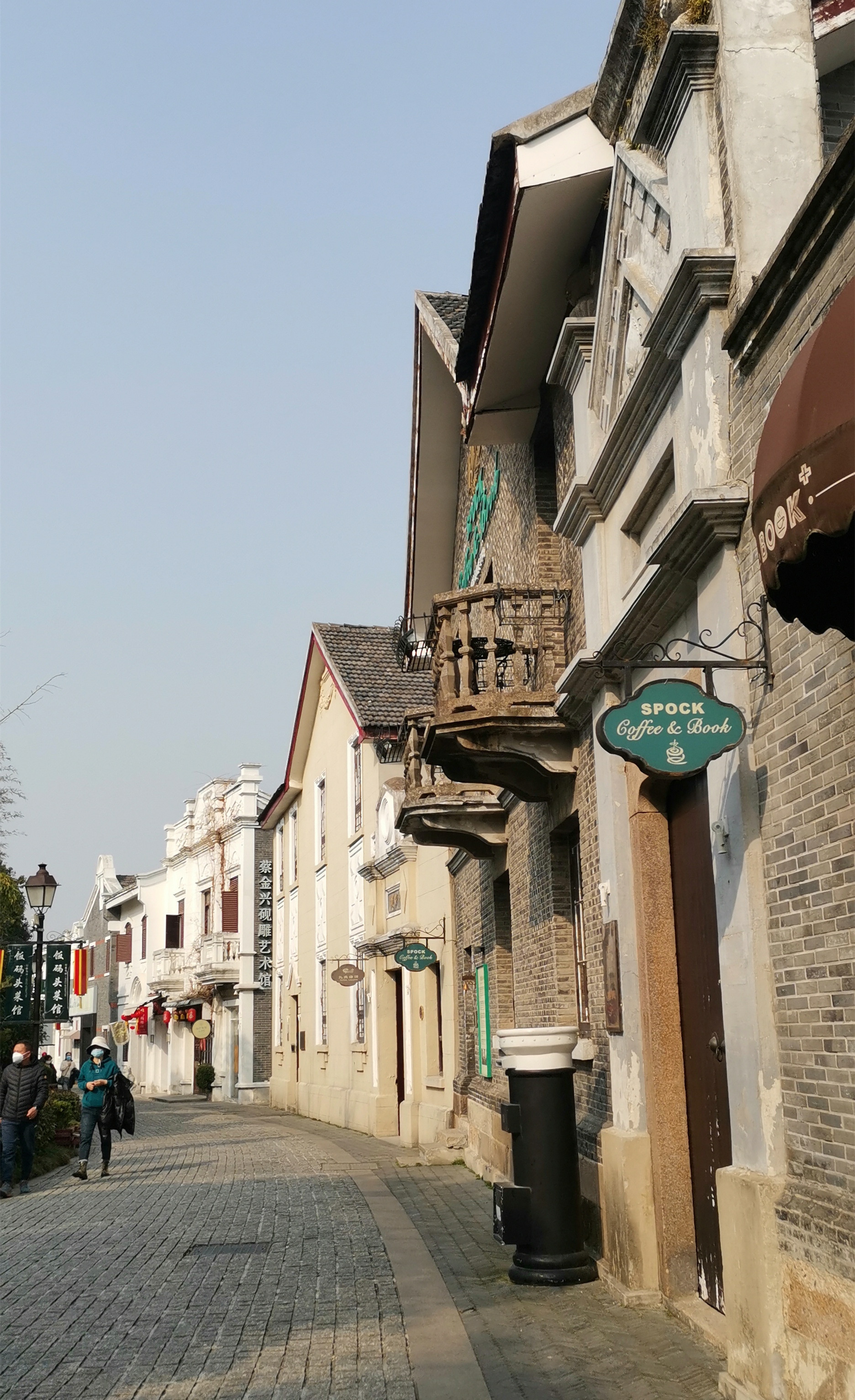 阊门的北码头风情街位于古城墙以南,西靠苏州外城河,虽与山塘街仅有一河之隔,但其名气却远不如山塘街来的大,外来游览江南的人们也鲜少知道此处。此处却妙就妙在历史昌盛兴衰中,踏上这条街,虽无法承纳古城墙的强烈兴衰感,也不如山塘一步一江南来的温婉,却更能够在这一砖一瓦中西合璧形成的民国建筑中感受岁月安然下的美好,依水乡而建,建筑以雅淡清水砖与强烈的欧式古典风采相结合,是接纳也是传承。