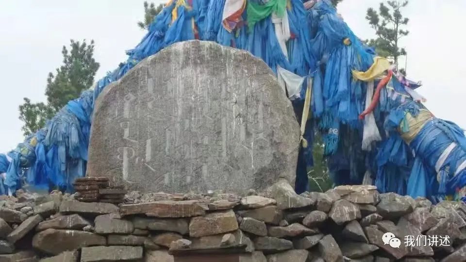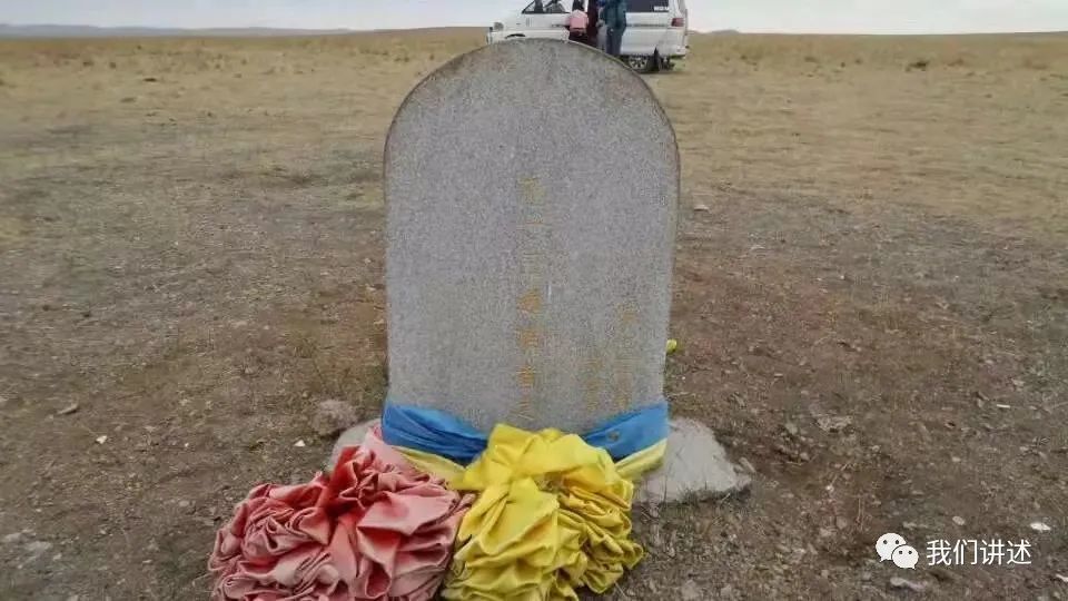 中午时分, 我们到达位于达达拉苏木北边的德伦宝立德格。这是一个南北走向的长条形山坡,形状像脾脏(“德伦宝立德格”的意思就是脾脏状的山坡 ),山坡上矗立着刻有圣祖成吉思汗出生地字样的石碑和敖包。