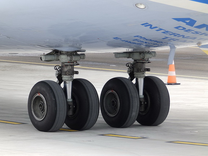 安-225的主起落架每侧由七对双轮组成,两侧共28个轮胎