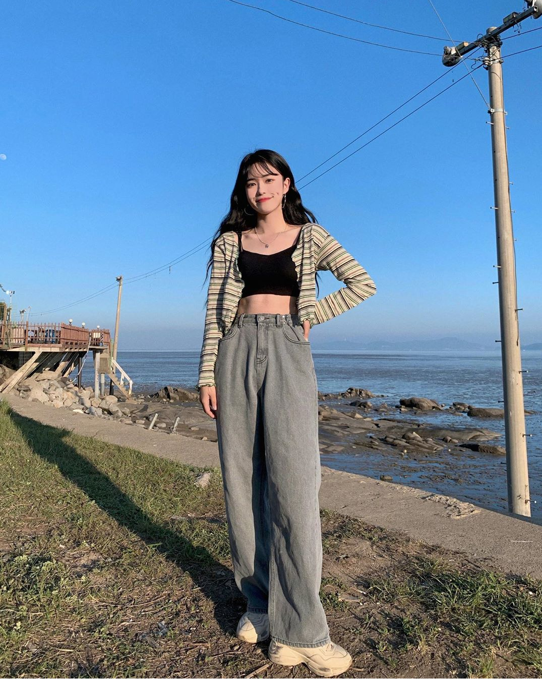 敞开穿会更适合大家,背心+高腰牛仔裤打造的高腰线,不担心被遮住,显高又显瘦。