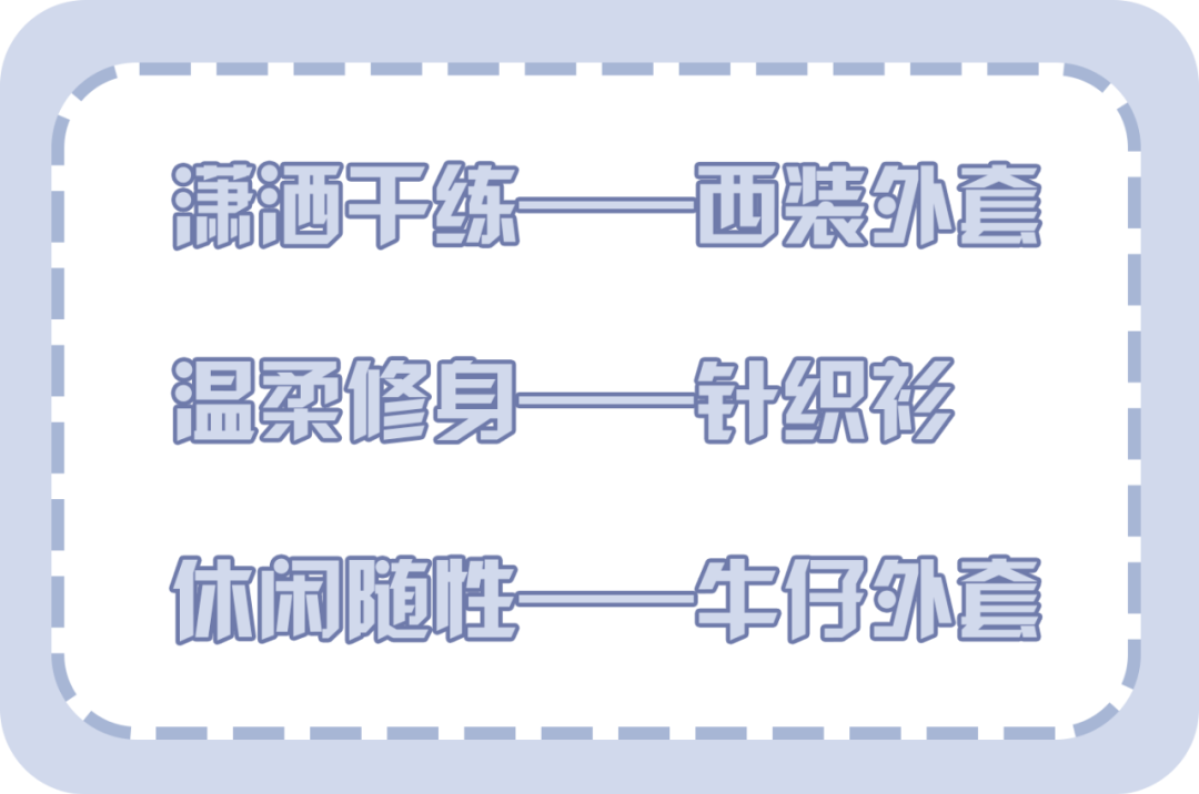 如果内搭是T恤之类的上衣,就选择稍微修身一点的款式,这样外搭短针织外套,不会显得臃肿。