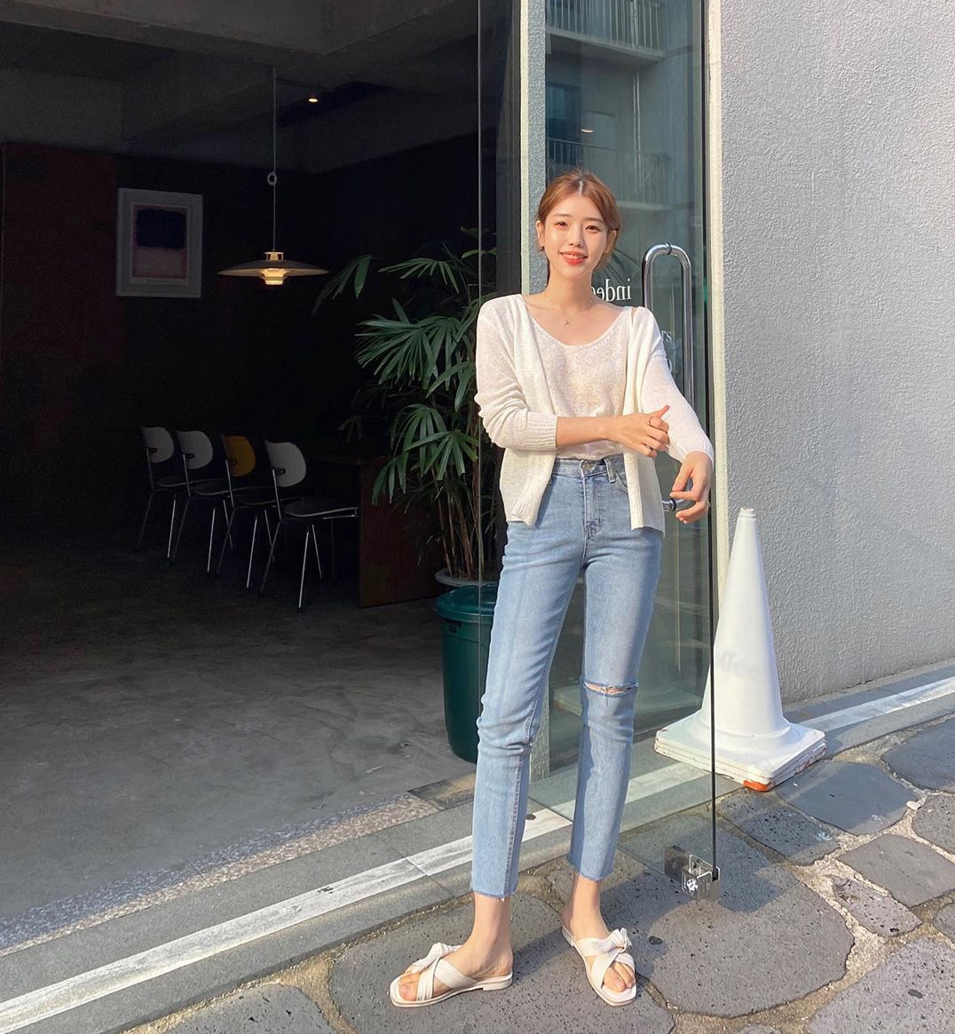 轻薄的针织外套,不会把短上衣打下的“上身显瘦江山”抵消掉,只会帮你遮一遮肉肉,再释放点温柔属性。
