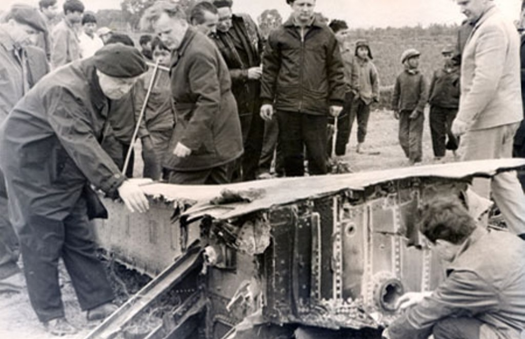 1960年5月1日苏联人员查看击落的U-2飞机残骸