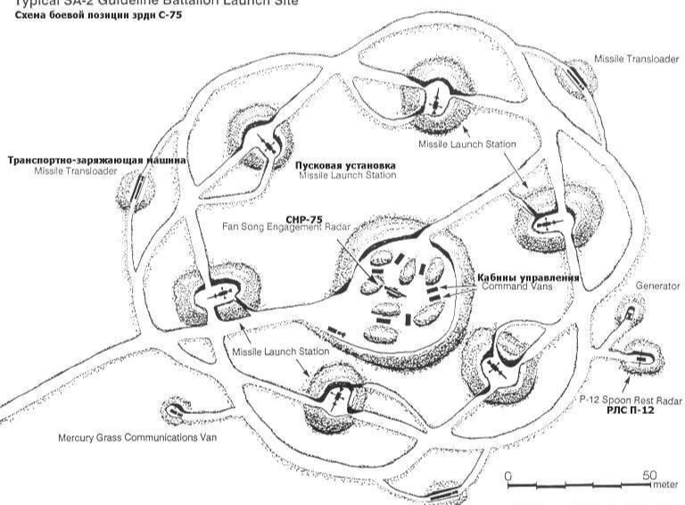 萨姆-2防空导弹营阵地布置示意图