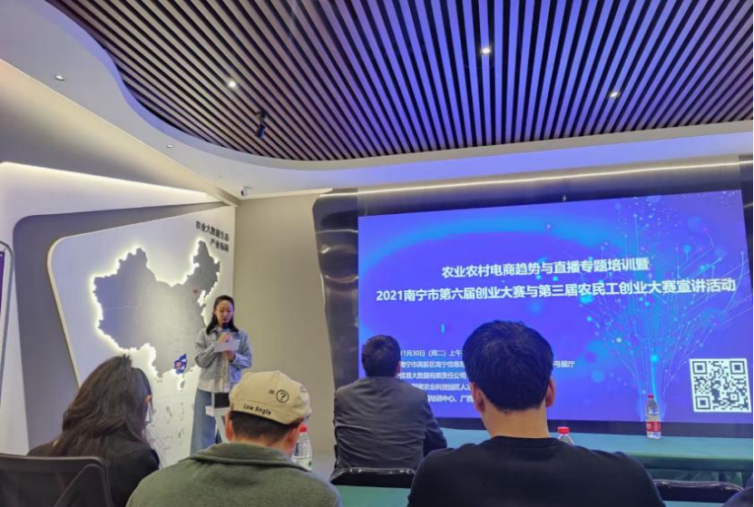 除为当地农业发展输入数字化技术与能力之外,南宁农业大数据基地同样致力于整合资源与培训,从具体问题出发,服务农业发展,培育新型人才。2020年,新冠疫情严重影响农产品销售,南宁农业大数据基地开拓线上销售渠道,为当地农户组织“公益助农直播”活动,利用淘宝、抖音等平台提升农产品销量,也让20余万消费者近距离了解了当地优质的农产品与高效的物流服务。直播+助农模式收效良好,随后,南宁农业大数据基地又携手广西南宁国家科技园区、广西大学科技园,广西新农人社群等机构共同举办“农业农村电商趋势与直播专题培训”系列活动,为农业企业、农户讲解电商直播的运营方法和带货方式,短视频平台规则分析等内容,从而提升农业从业人员的电商销售、运营技能,助力农业创新发展。