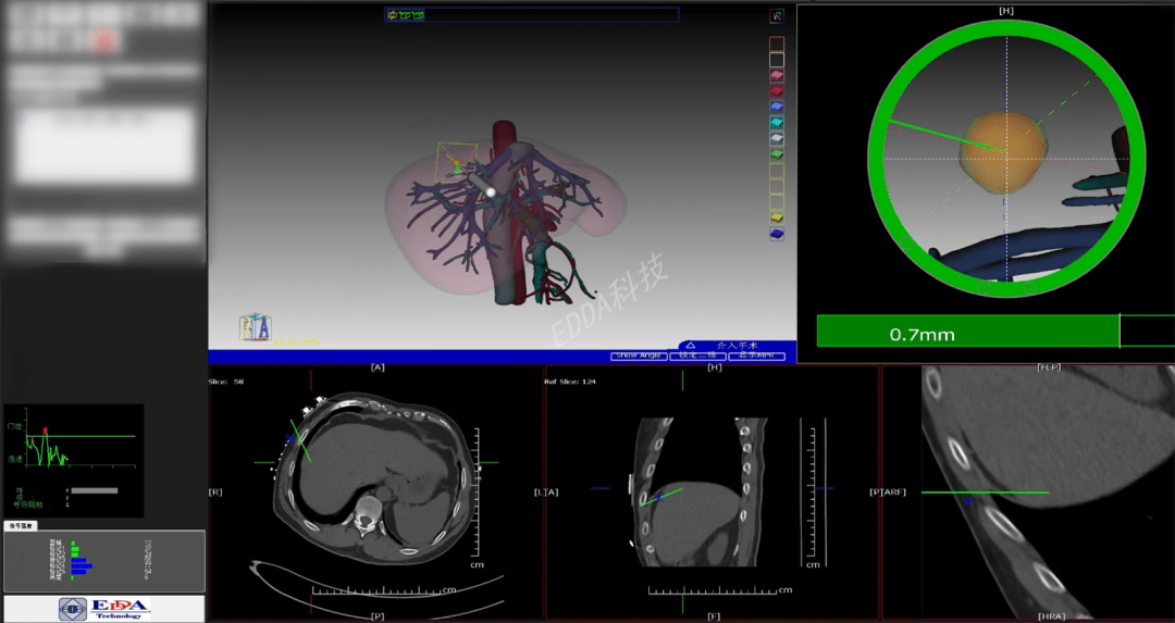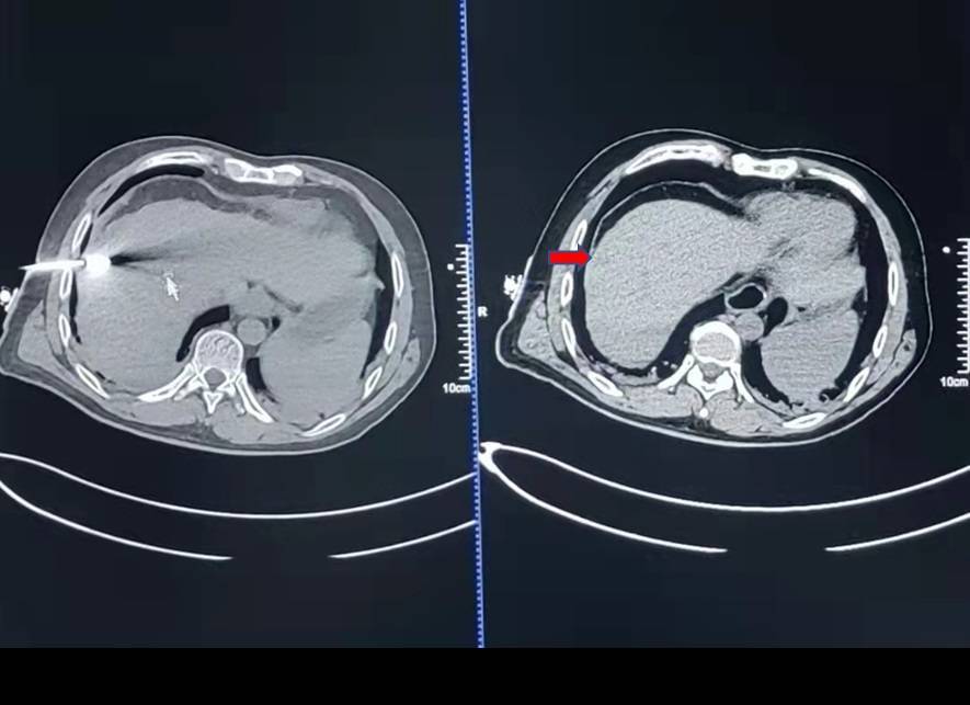 患者,48岁,2个月前进行了直肠癌根治术,但遗憾的是,术后辅助化疗期间复查腹部CT发现肝脏转移复发。肝右前叶包膜有一个大小约为1.4cm*1.4cm的单发转移结节。经沟通,患者希望能够通过微创的方法治疗这一转移病灶。