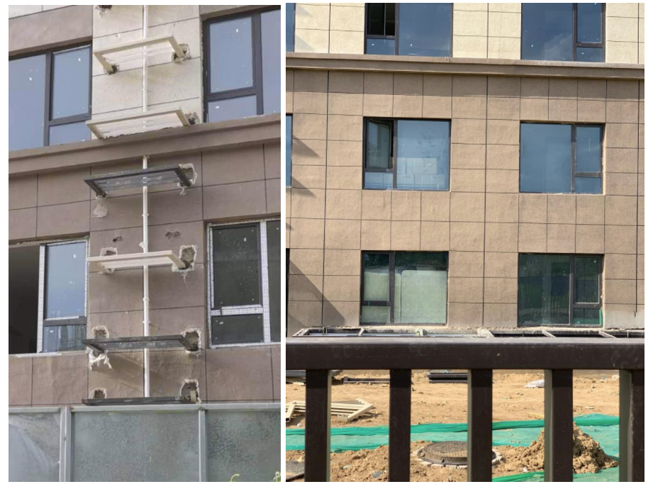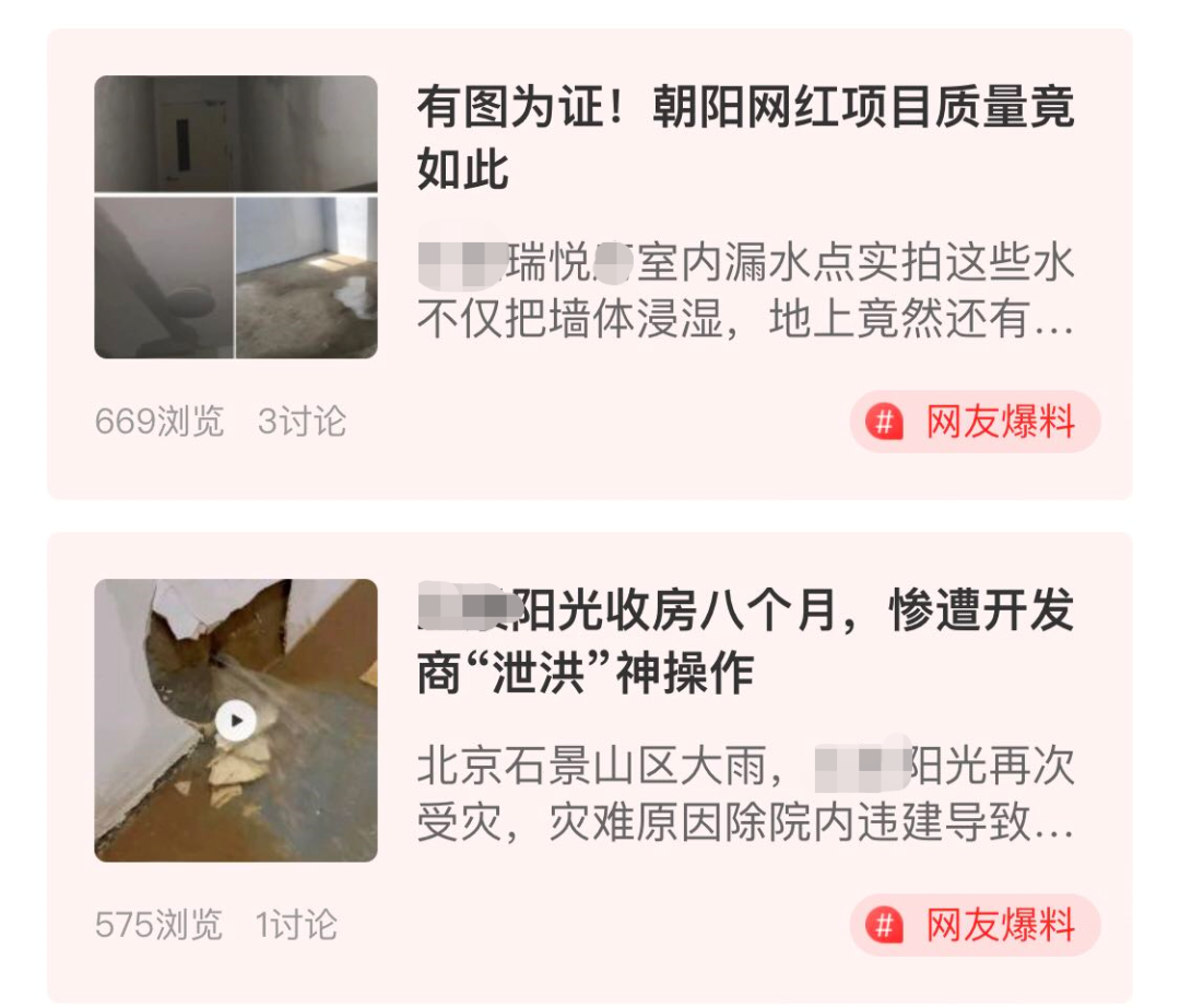 比如北京大兴的某风华小区的业主们,先是发现项目空调架破坏了防水层,导致建筑外立面起泡不平。