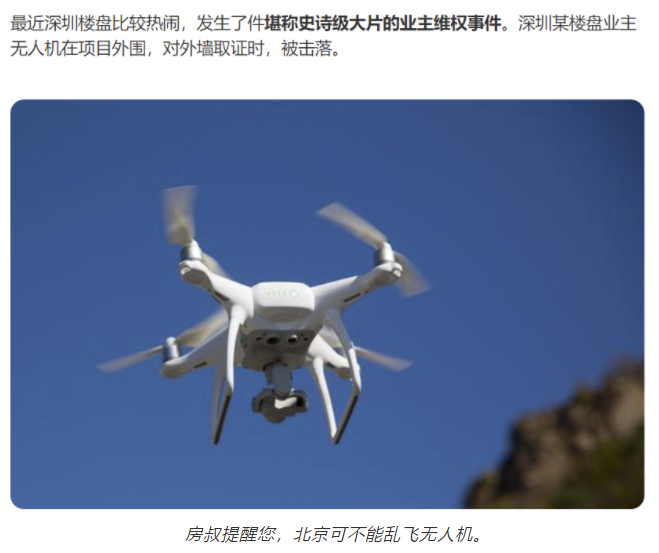 比如深圳宝安区尖岗山某号花园的业主,就在楼盘还在建的时候派出了无人机去现场拍摄监督(还被击落了)。