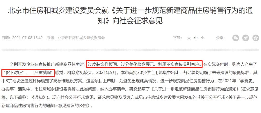 去年,住建部等八部门尤其关注到了买房人收房时货不对板的问题,特意开启整治活动、出台通知,禁止开发企业过度装饰样板间、过分美化楼盘展示。