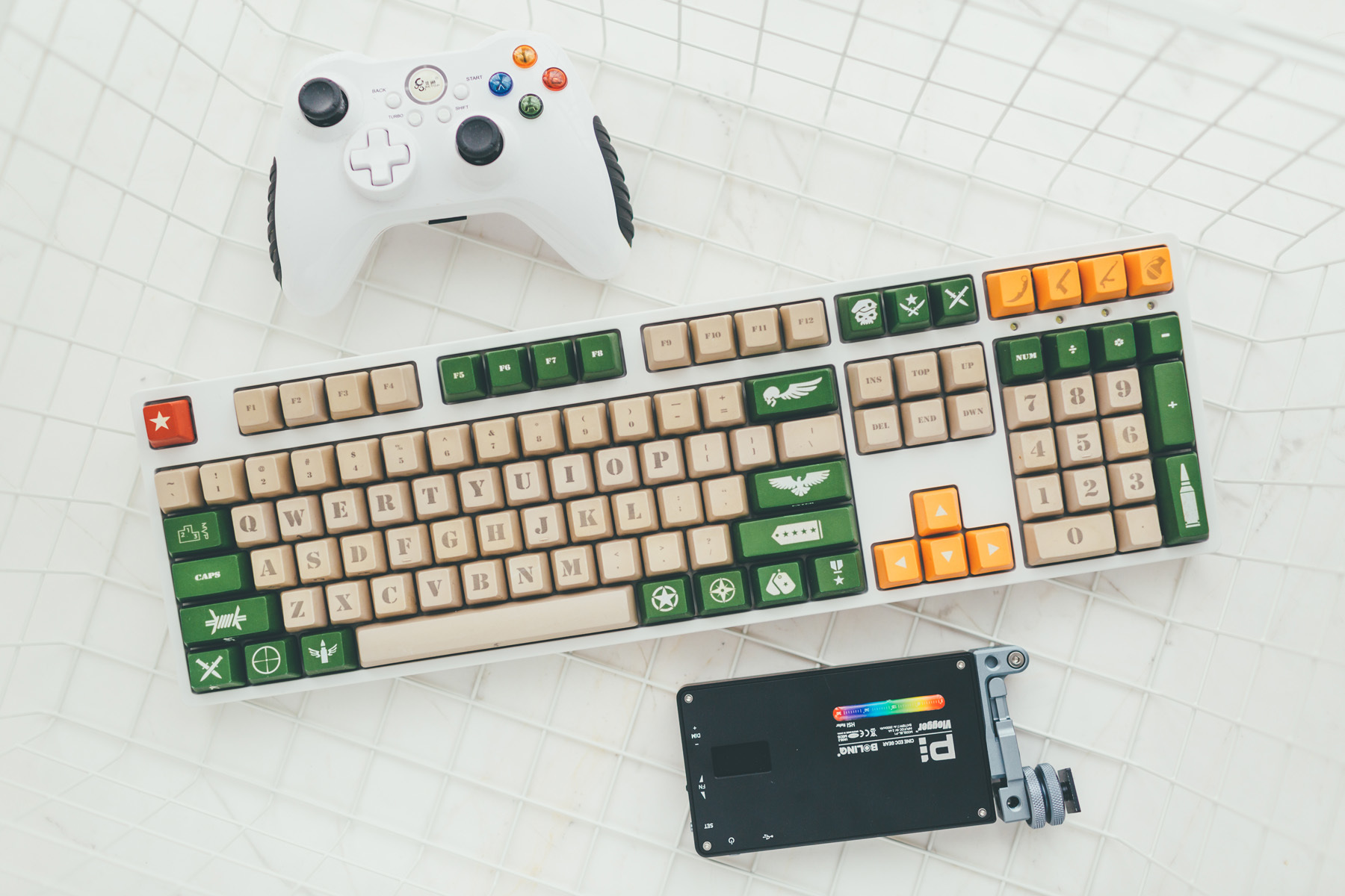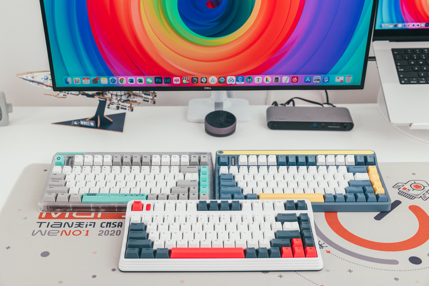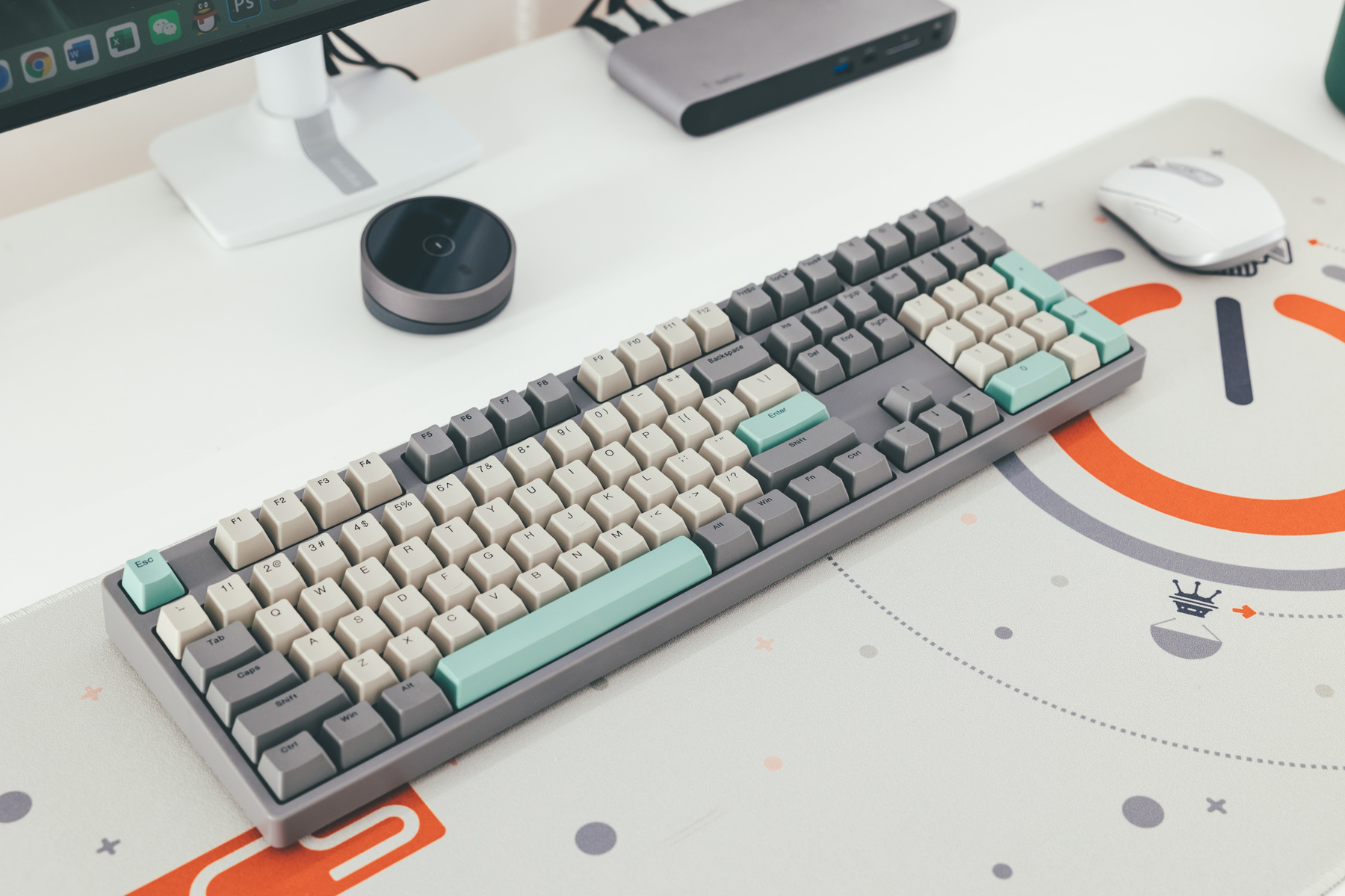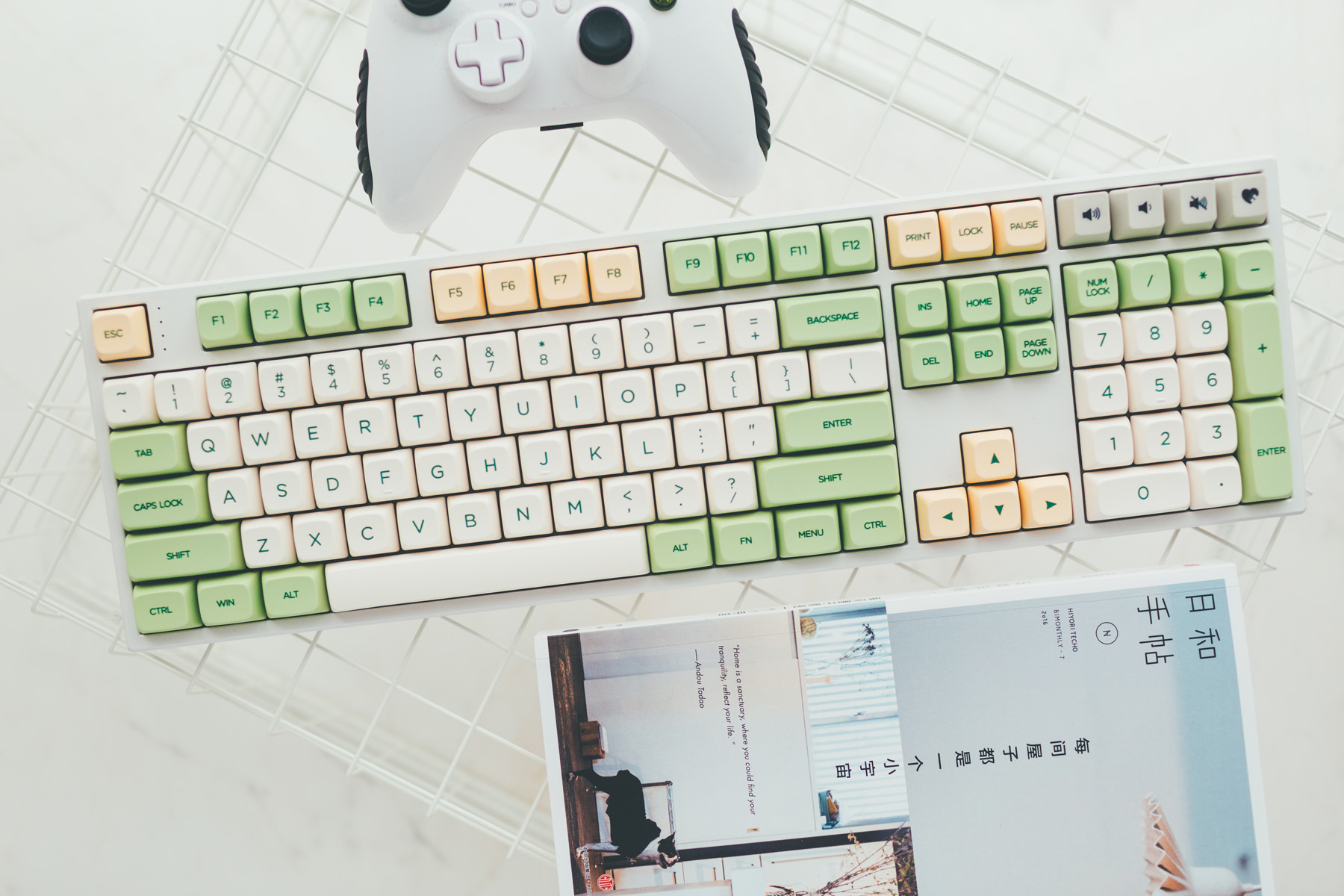 这把机械键盘是工作室主力,当初为了搭配这套白+绿主题选用的。