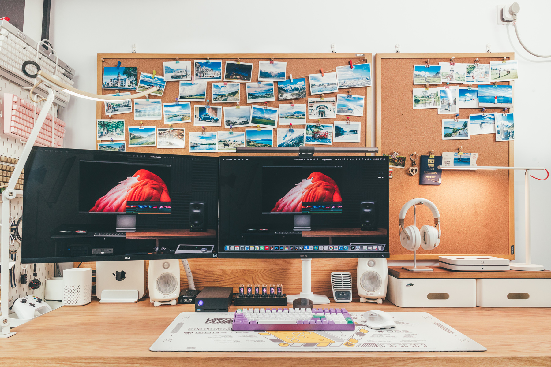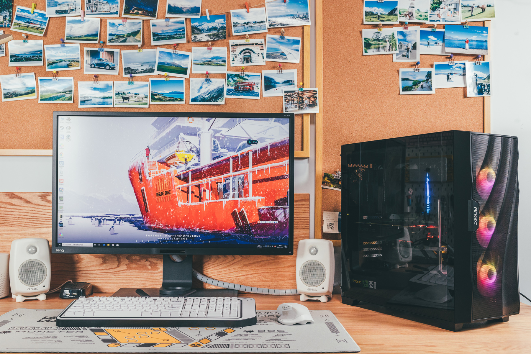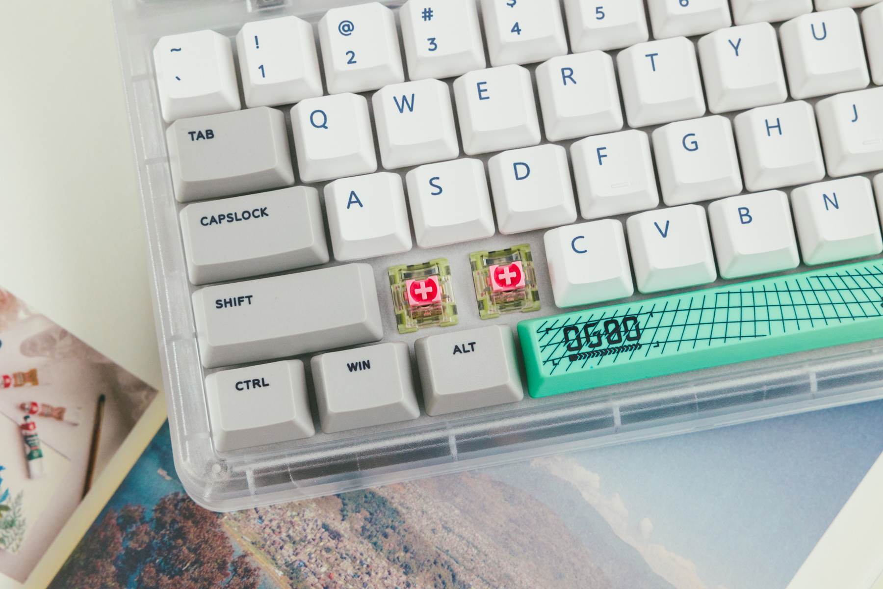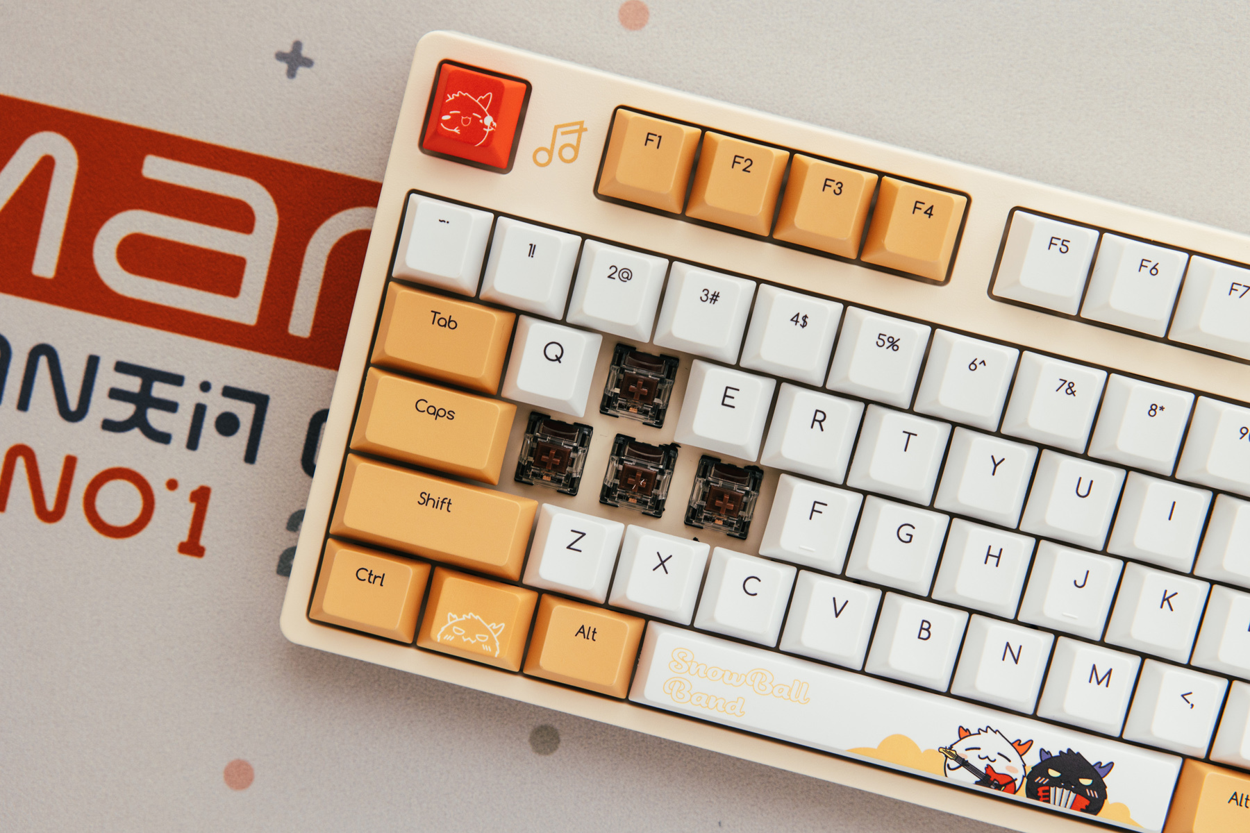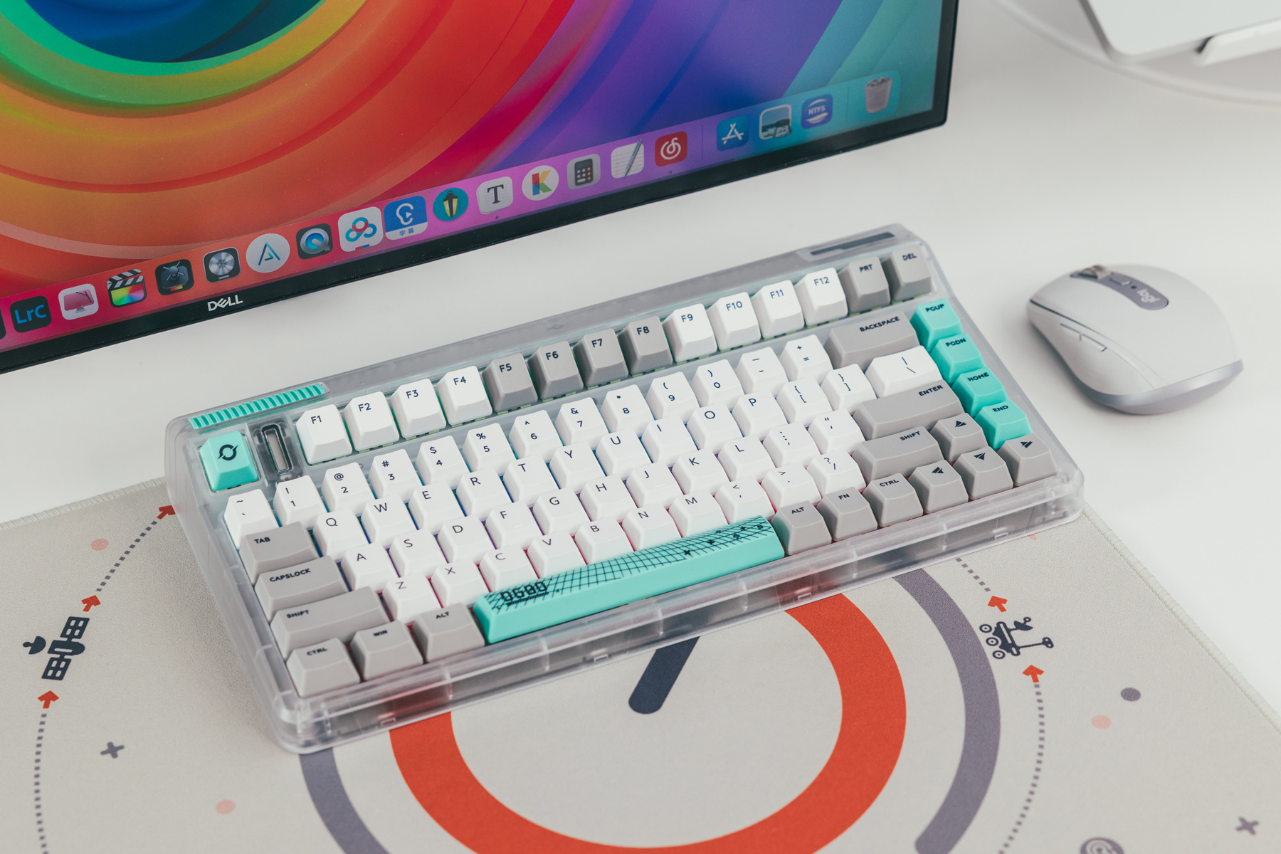 这把机械键盘是工作室主力,当初为了搭配这套白+绿主题选用的。