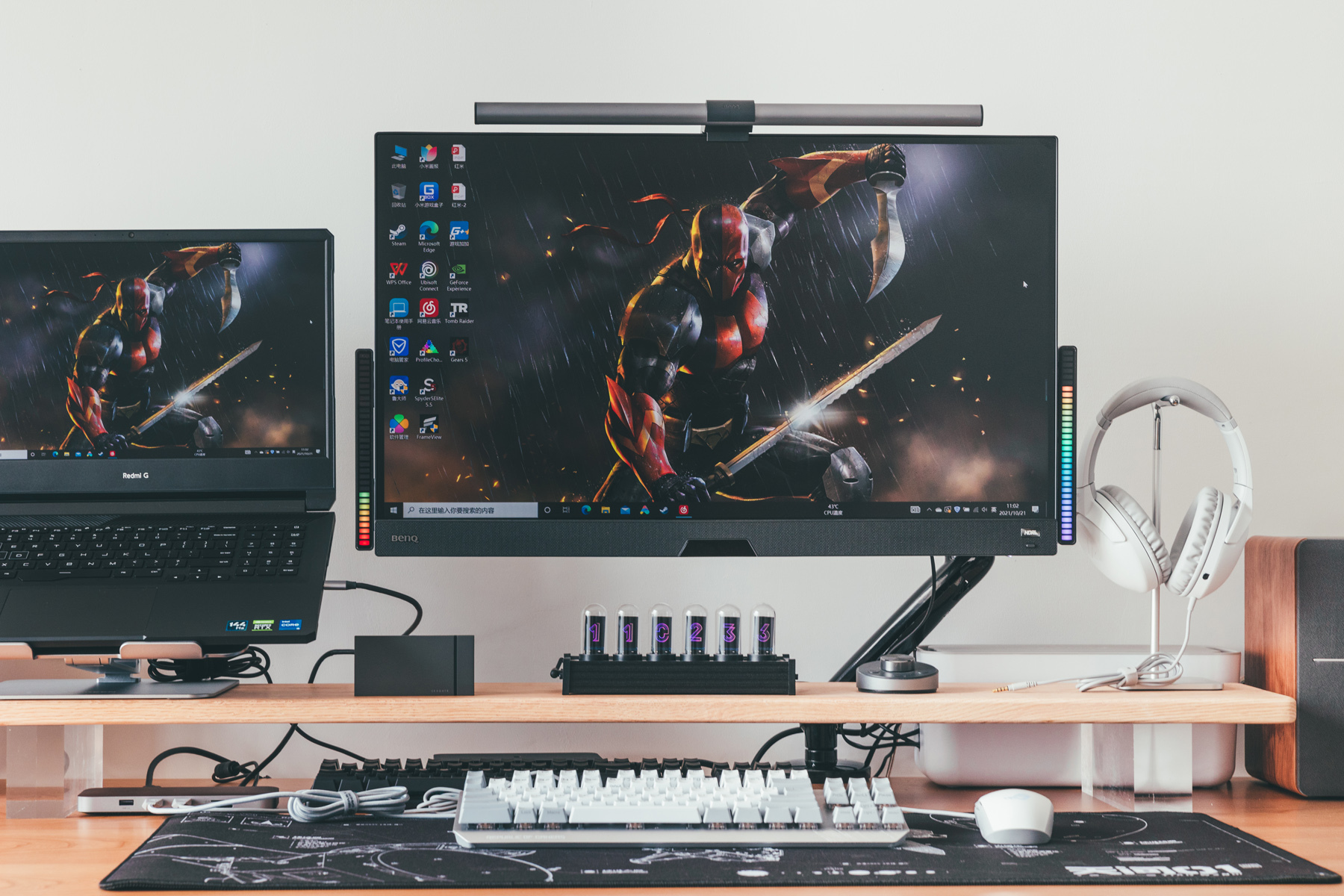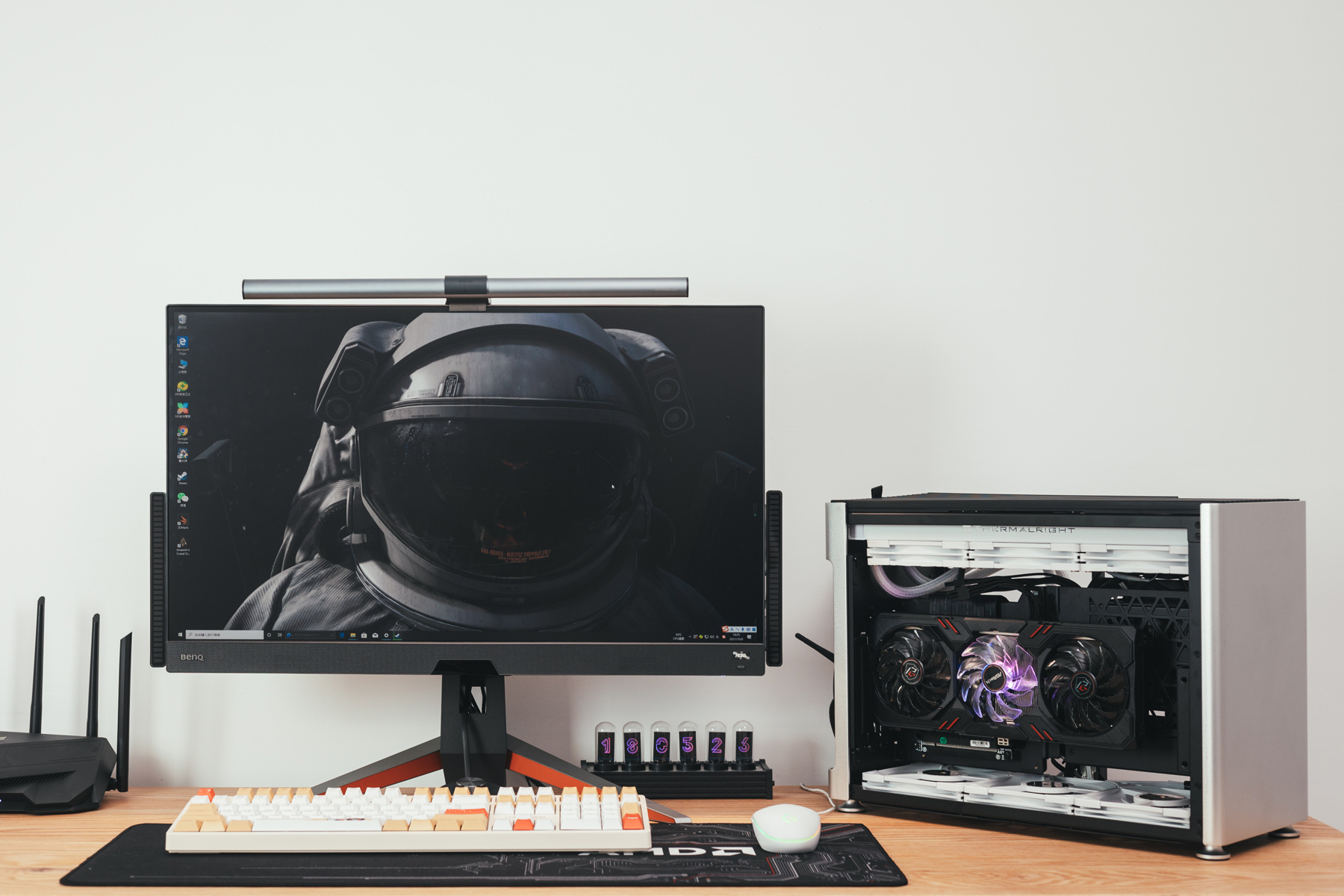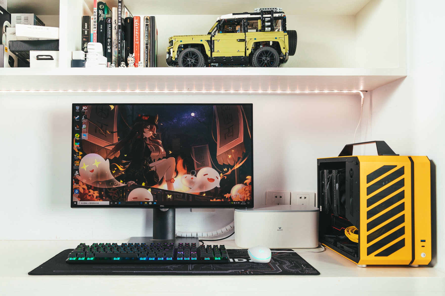 之前尝试搭建过一个以游戏本为核心的游戏娱乐桌面,搭配的键盘就是ROG 游侠TKL月耀白机械键盘,不过个人感觉还是搭配全白桌面更匹配一些。