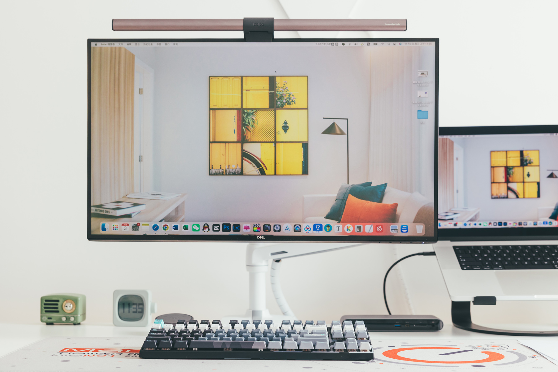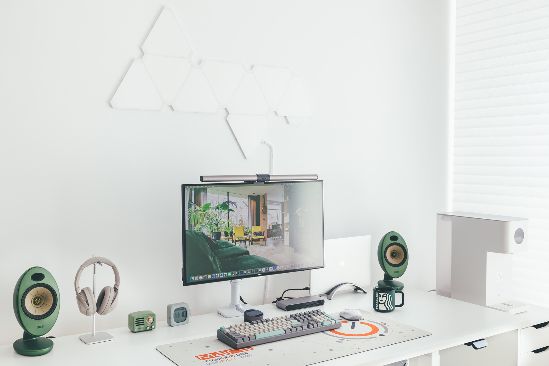 工作室这套桌面搭建是以白色为主体颜色,绿色为辅助颜色。