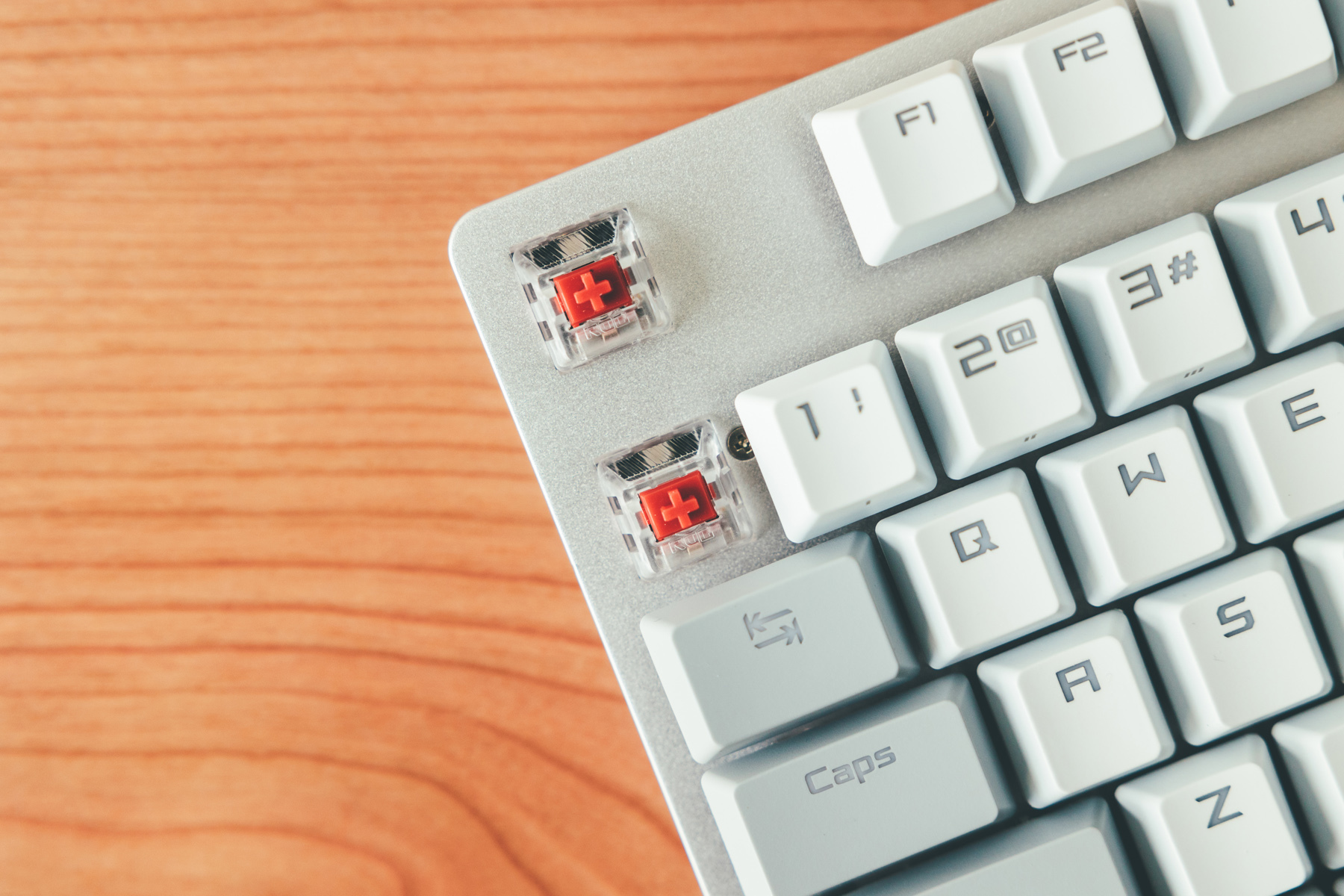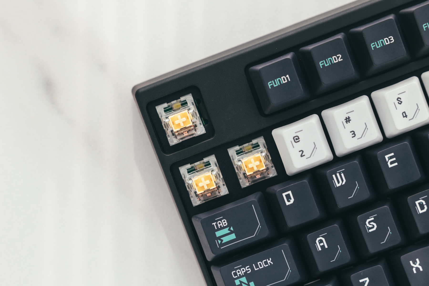 80系列均为阶梯式结构,功能按键区域和手掌呈现的角度相对会比普通键盘更大。
