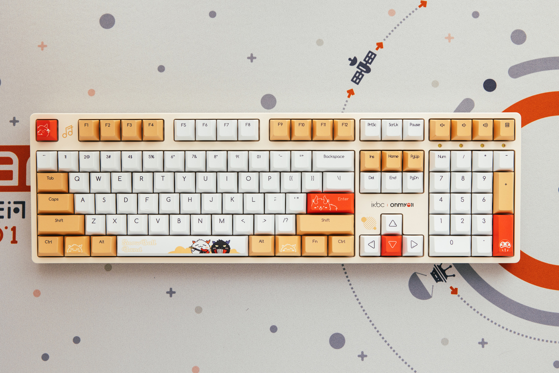 虽然我一直吐槽很多品牌都是更换配色和键帽为主更迭产品,但是还是有一些键盘的配色和键帽能让我有点兴趣,比如IKBC X阴阳师onmyoji联名机械键盘。