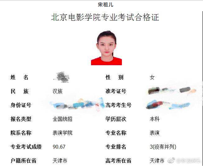 最终她以文科成绩总分454,超过了天津高考文史类本科线,此前在艺考中也取得了90.67分的好成绩,排名第三,将被北京电影学院录取。
