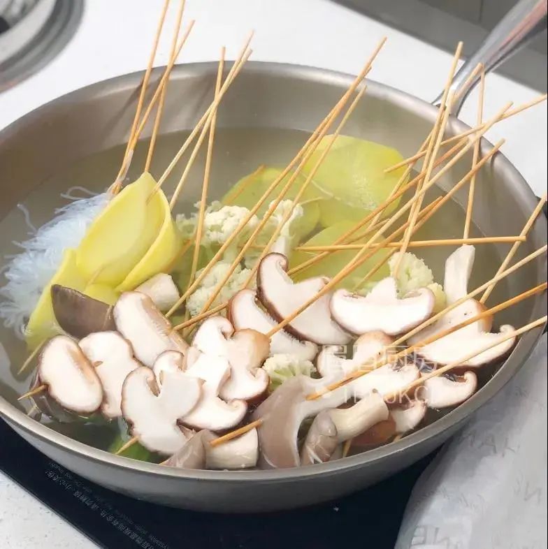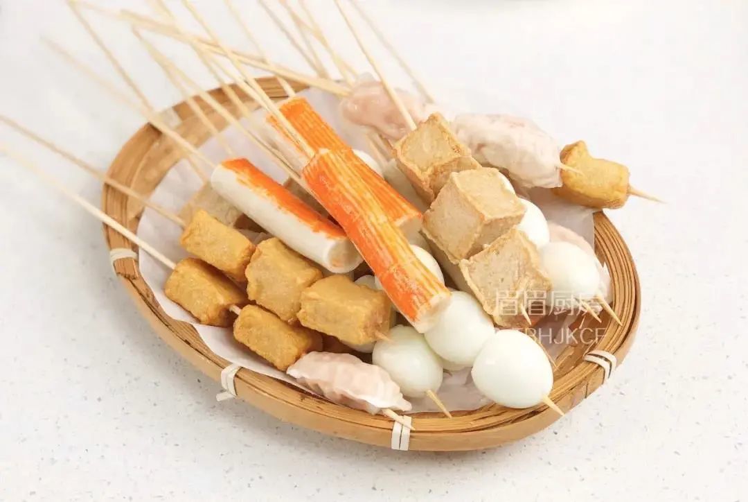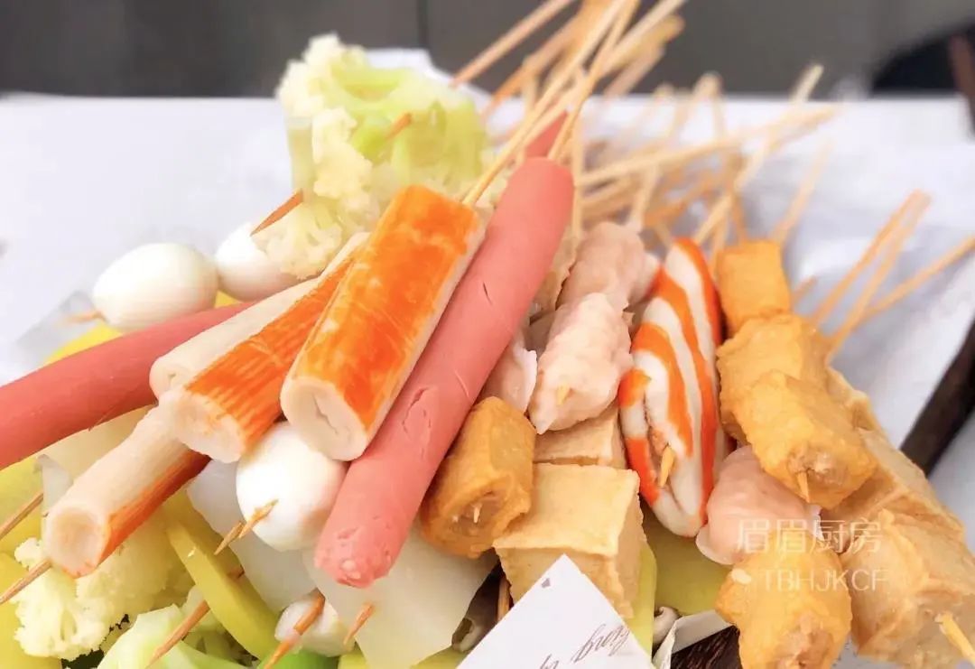 2. 喜欢吃的丸子也用竹签串起来(丸子的淀粉含量较高,如果是减脂人群可以不放丸子)