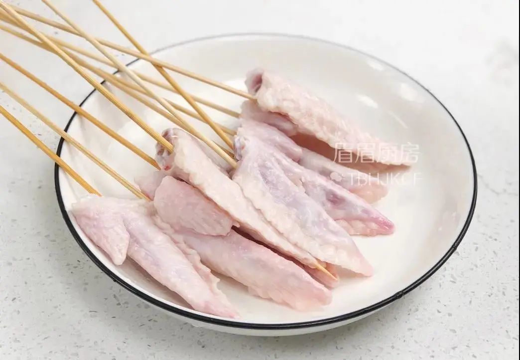3. 喜欢吃的肉类也洗净串起来(家里人多的可以多准备些,鸡肠、肥牛、鸡爪等都可以)