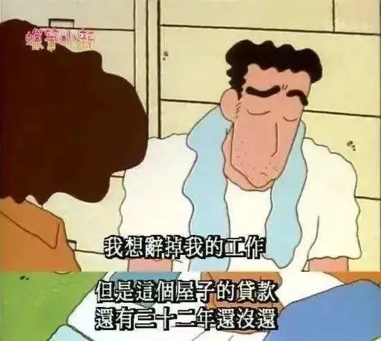 所以,为什么每次野原广志在受不了公司的气,想要辞职的时候,却都会垂头丧气的说,“自己还有32年的贷款要还”。