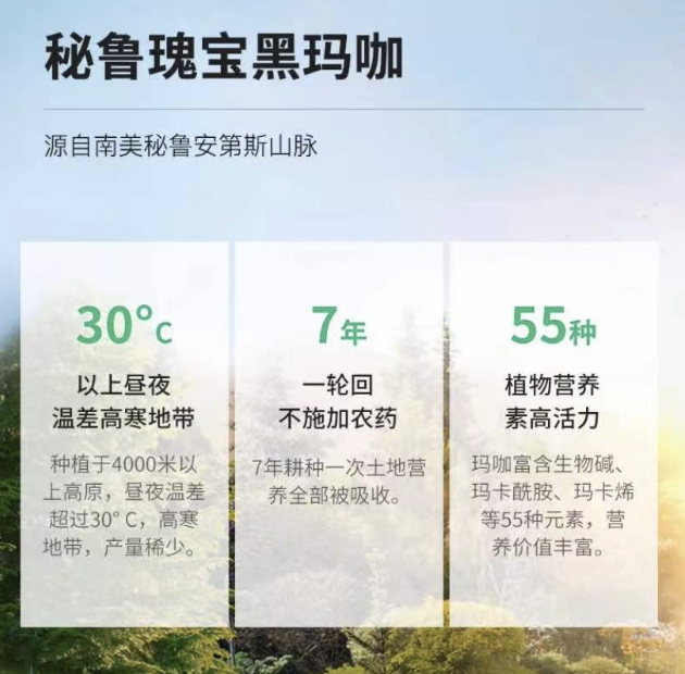 而奥加尼卡玛咖选用的是来自原产地-秘鲁的高浓缩玛咖,由天然玛咖提取物制成,每粒玛咖含量高达750Mg。