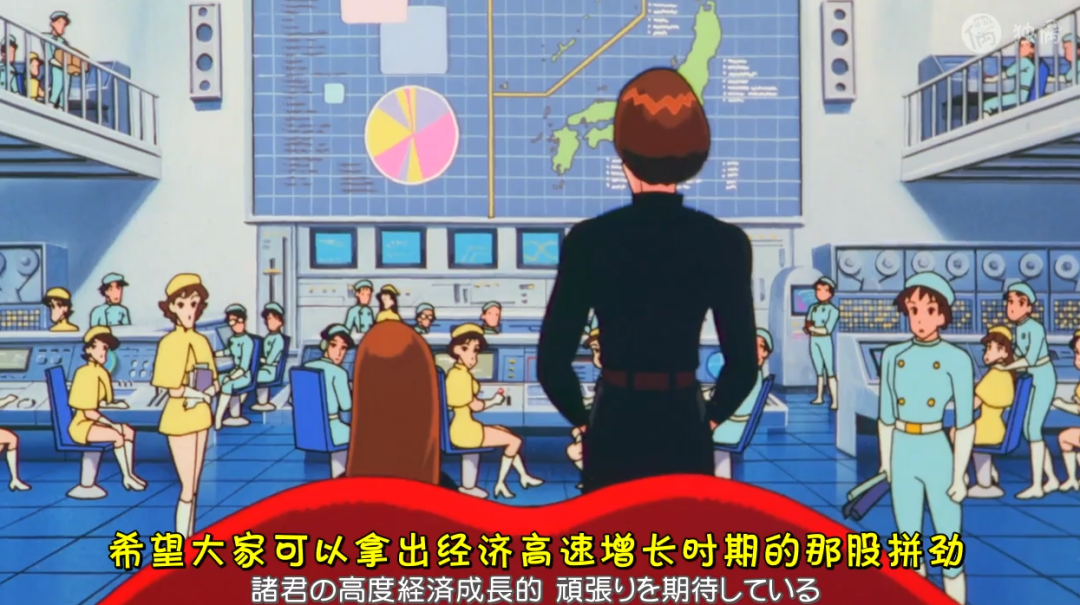 在剧场版《トナ帝国の逆襲》中,反派人物鼓舞员工努力工作时,喊出了“希望大家拿出经济高速增长时期那股拼劲”。