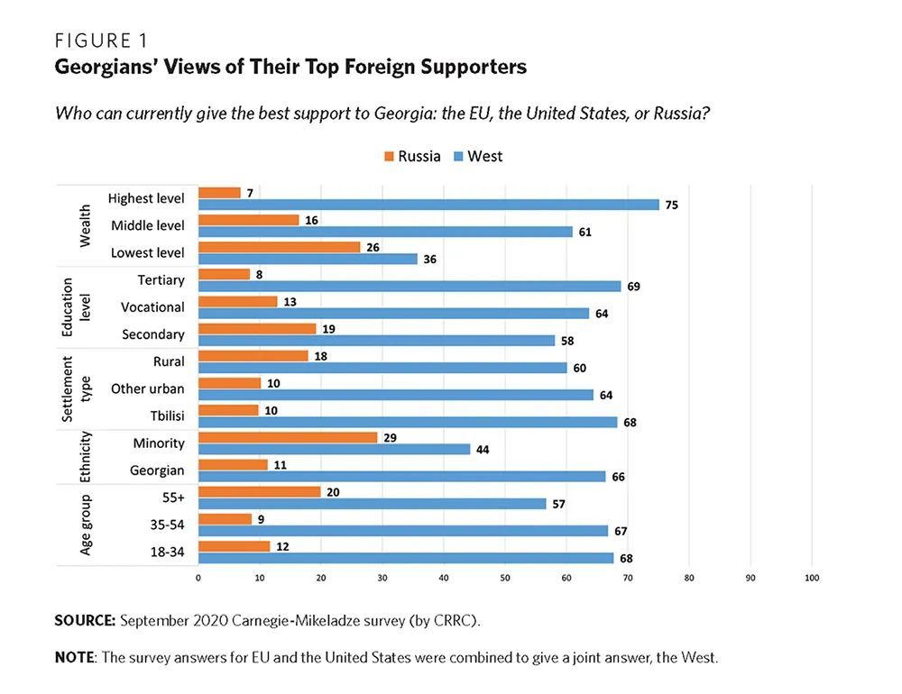 卡内基国际和平基金会在欧洲的一项研究指出,格鲁吉亚在这样的状况下,需要外部因素来解决自身的国内矛盾,这让很多人对格鲁吉亚政府的表现产生质疑,怀疑他们是否能够带领这个国家走向通往欧洲的道路。