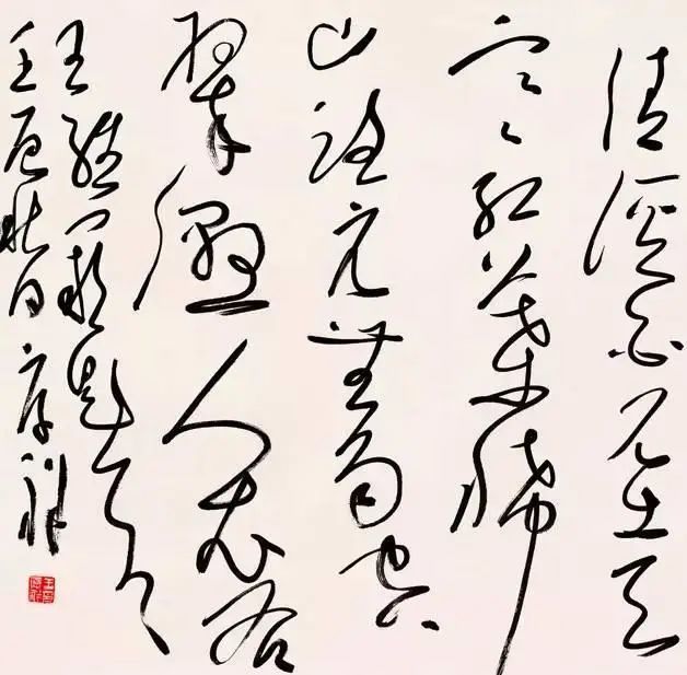 做到这些,除了一个人的创作激情外,就是笔法要灵动得明显。王厚祥的大草作品,除了激情之外,技巧的把握却是很理性的。在连绵不绝、势如破竹的形势下,对于节奏、起承转合早已了然于胸。这得自于作品创作技巧运用的熟练。想要熟练,就要多训练,方才使心和手达到交臻合一。