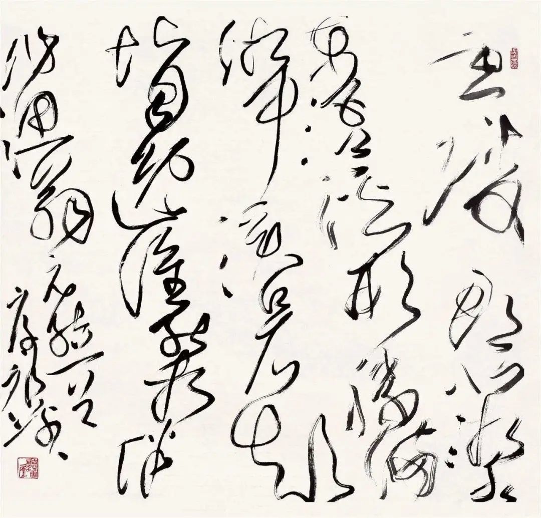 王厚祥有很熟练的草书书写技巧,在迅疾的运笔过程中,有着娴熟的转换、变化能力,在迅疾中做到了精到,实非易事。既为草书,也就是线的断续、短长、直曲、纵敛,各方面都在快节奏中体现。