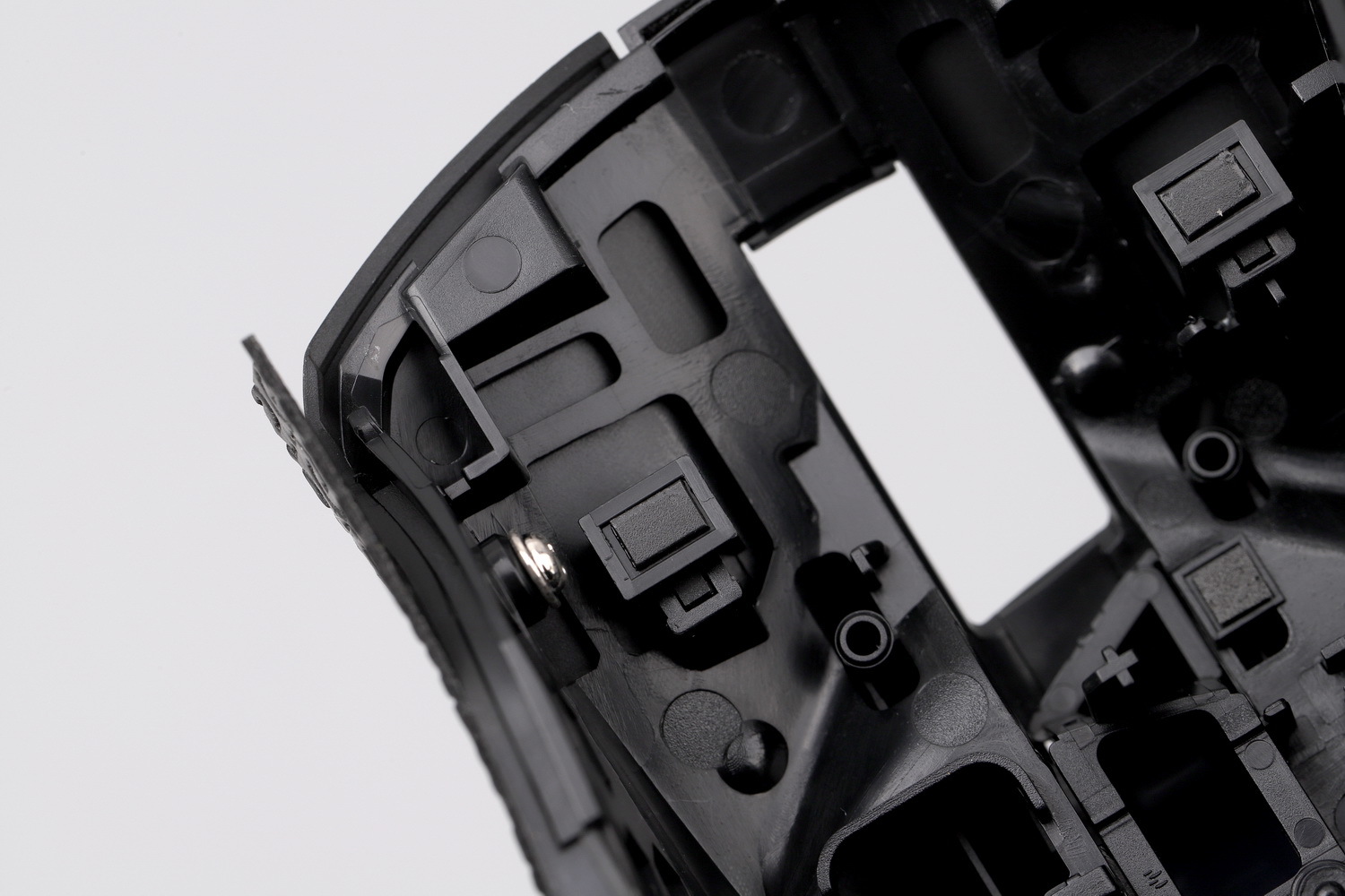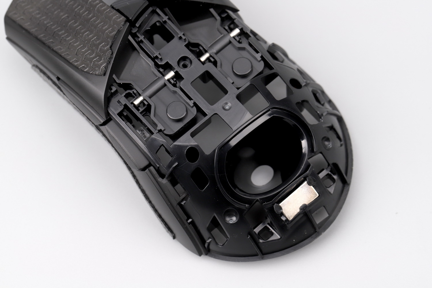 左右核心按键提供了硬度高过ABS的耐磨垫片,提高按键寿命,(按键柱耐磨或可修复)让可换微动变得更有实际价值,如果再配合现在流行的按键表层的可替换防滑贴,再加上新加入的轴式按键结构,一个曾经鼠标最容易坏的地方彻底寿命逆天,而且微动弹性衰减可随时替换。