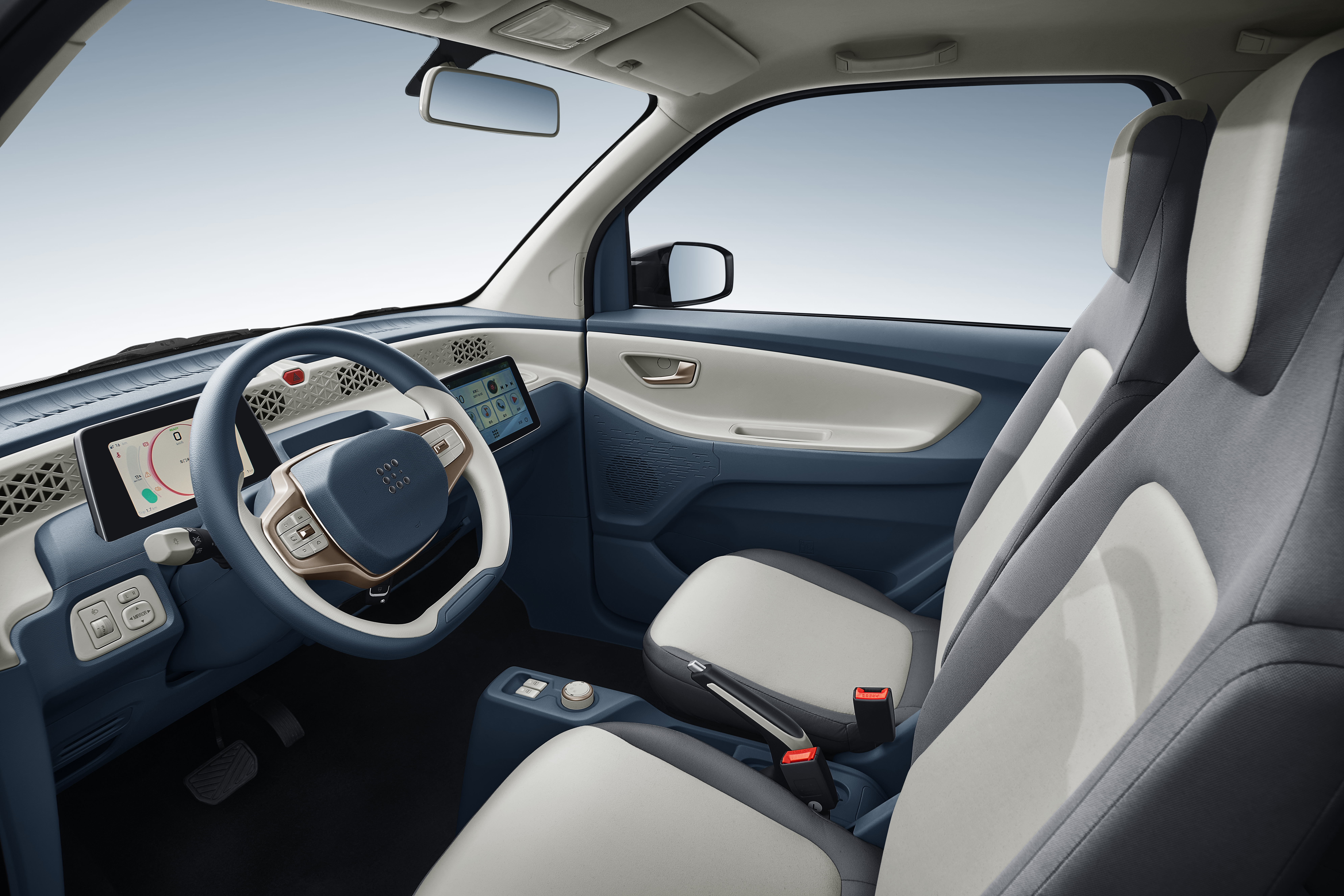 内饰设计方面,风光 MINIEV 实尚款拥有多个菱形、三角形打造的中控台设计风格以及出风口造型,还有不错的内饰颜色搭配,看上去非常年轻有活力,而且还配备了双辐方向盘。当二排座椅 5:5 比例放倒后,行李厢容积为 843 升。