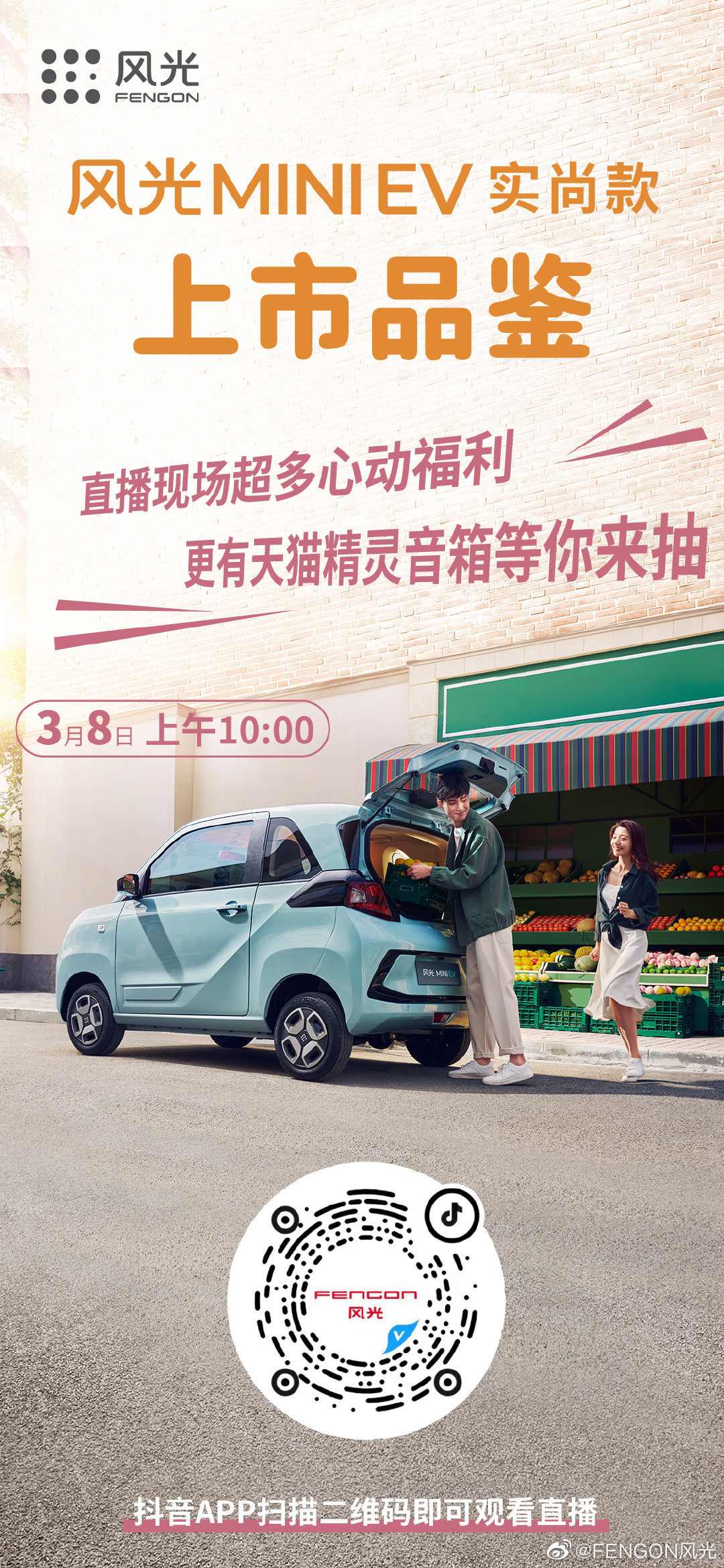 IT之家 3 月 8 日消息,今日,风光 MINIEV 实尚款正式上市,全系共三款车型,分别为实用型、舒适型、豪华型,分别为 2.86、3.56、4.16 万元不等,提供 120 公里和 180 公里两种续航里程,用户可根据自身用车需要选择。