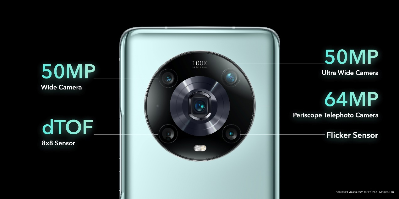 荣耀Magic4系列全新升级了影像融合技术,同时也大幅提升视频录制功能。镜头方面,荣耀Magic4采用5000万超广角镜头+5000万像素主摄+800万像素潜望式长焦。荣耀Magic4 Pro采用5000万像素广角摄像头、5000万像素超广角摄像头和6400万像素潜望式长焦摄像头,此外还有8x8 dToF激光对焦传感器和Flicker传感器等。