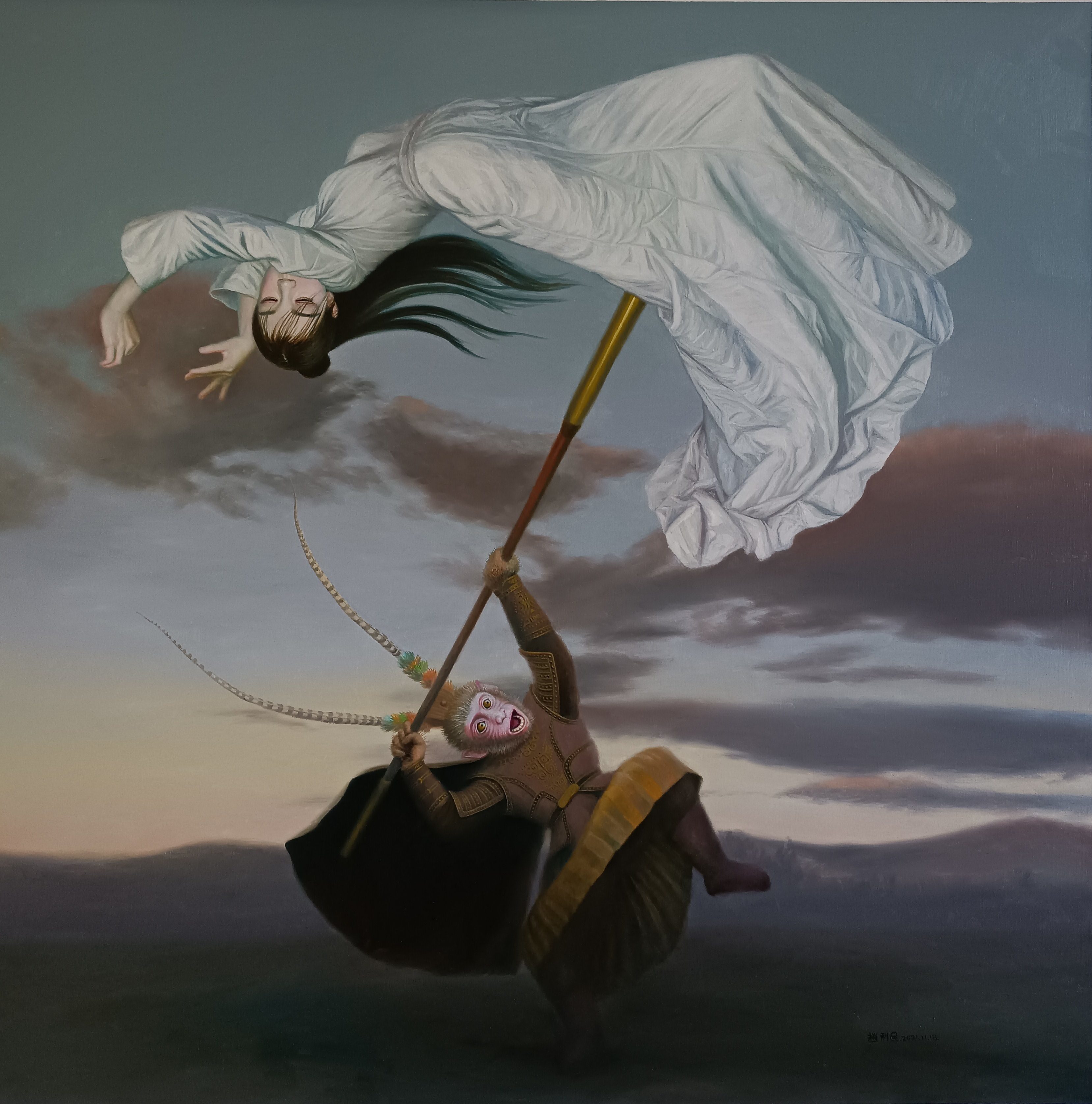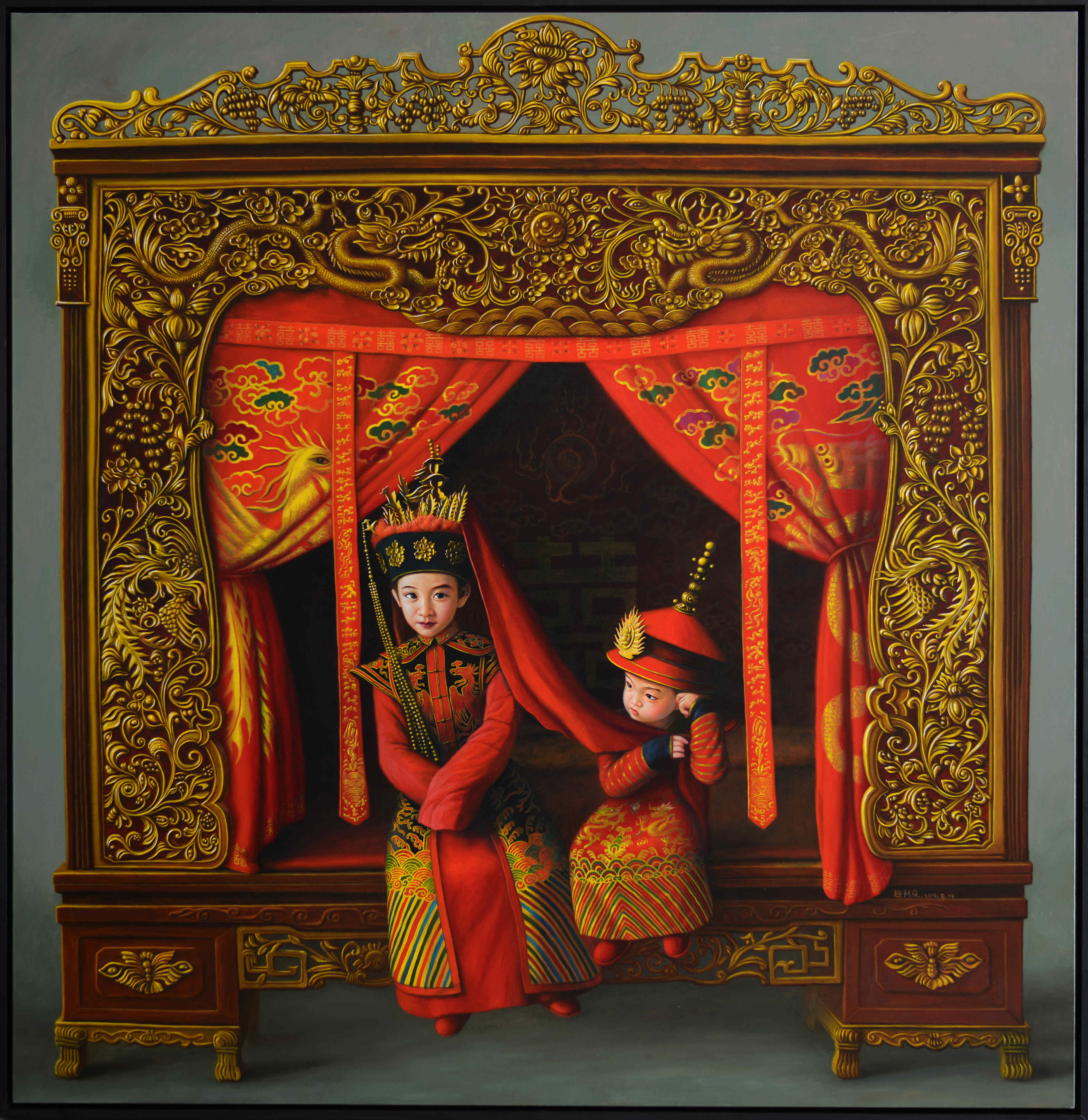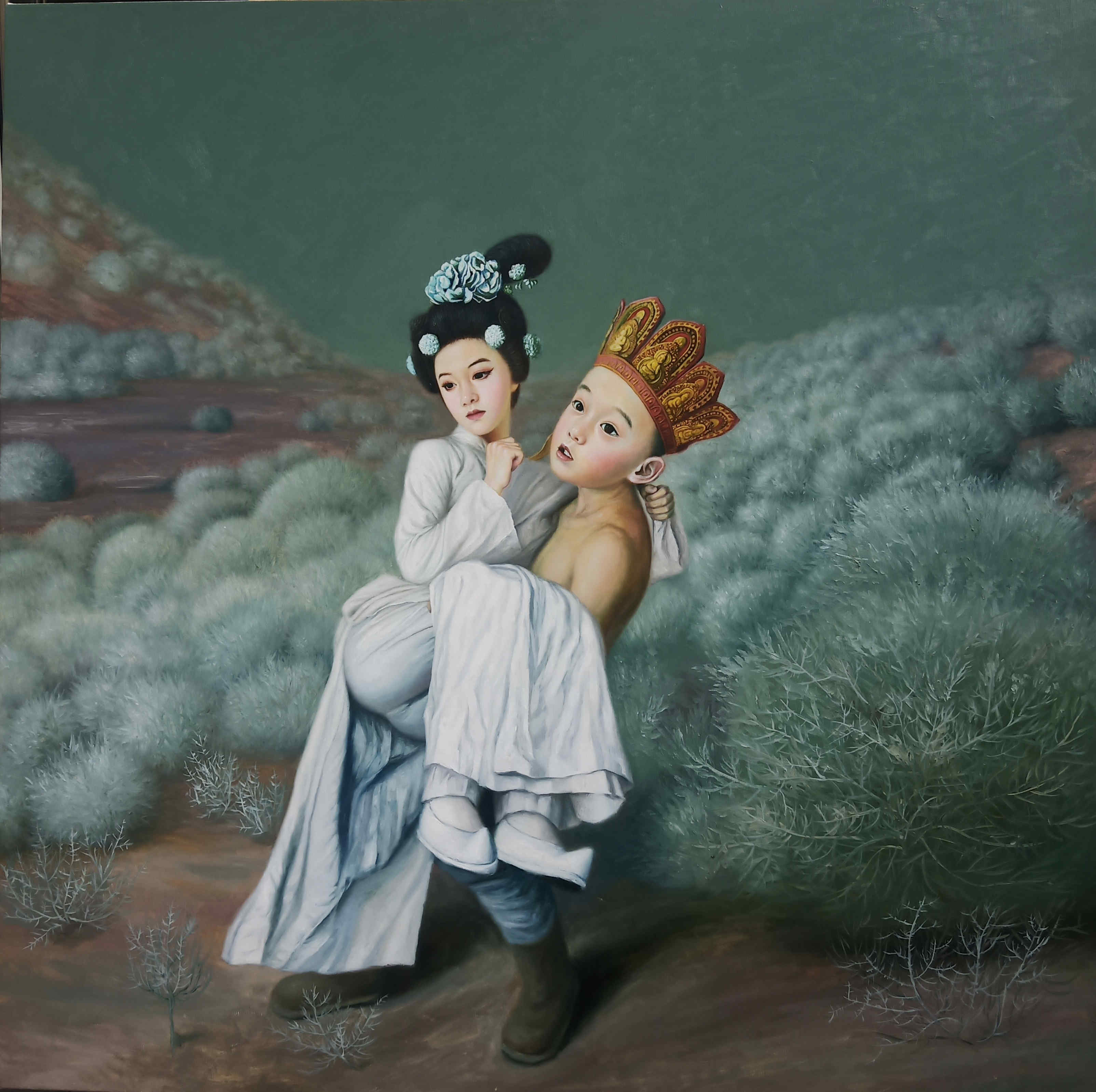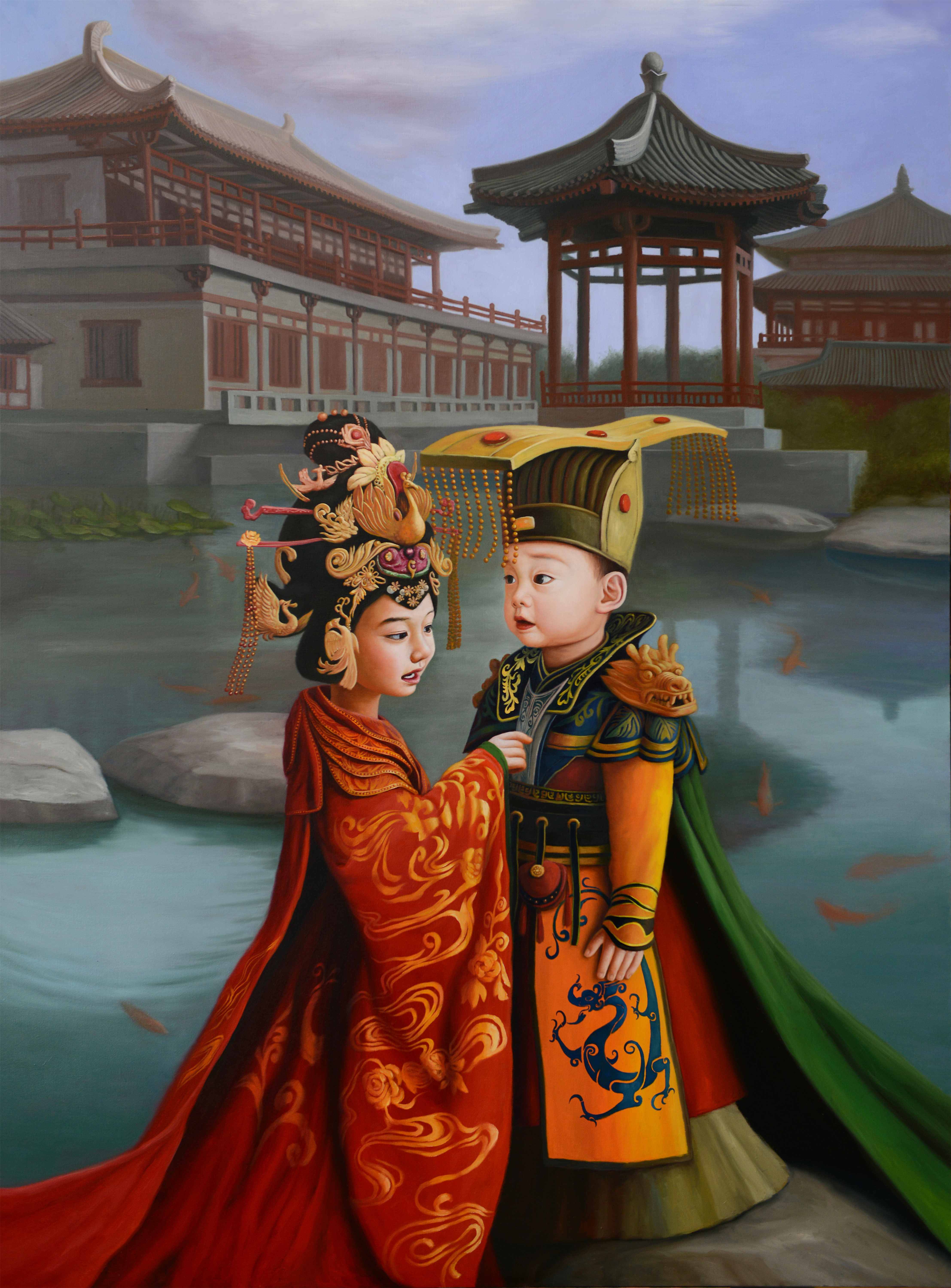 《刘秀与阴丽华》155×150布面油彩