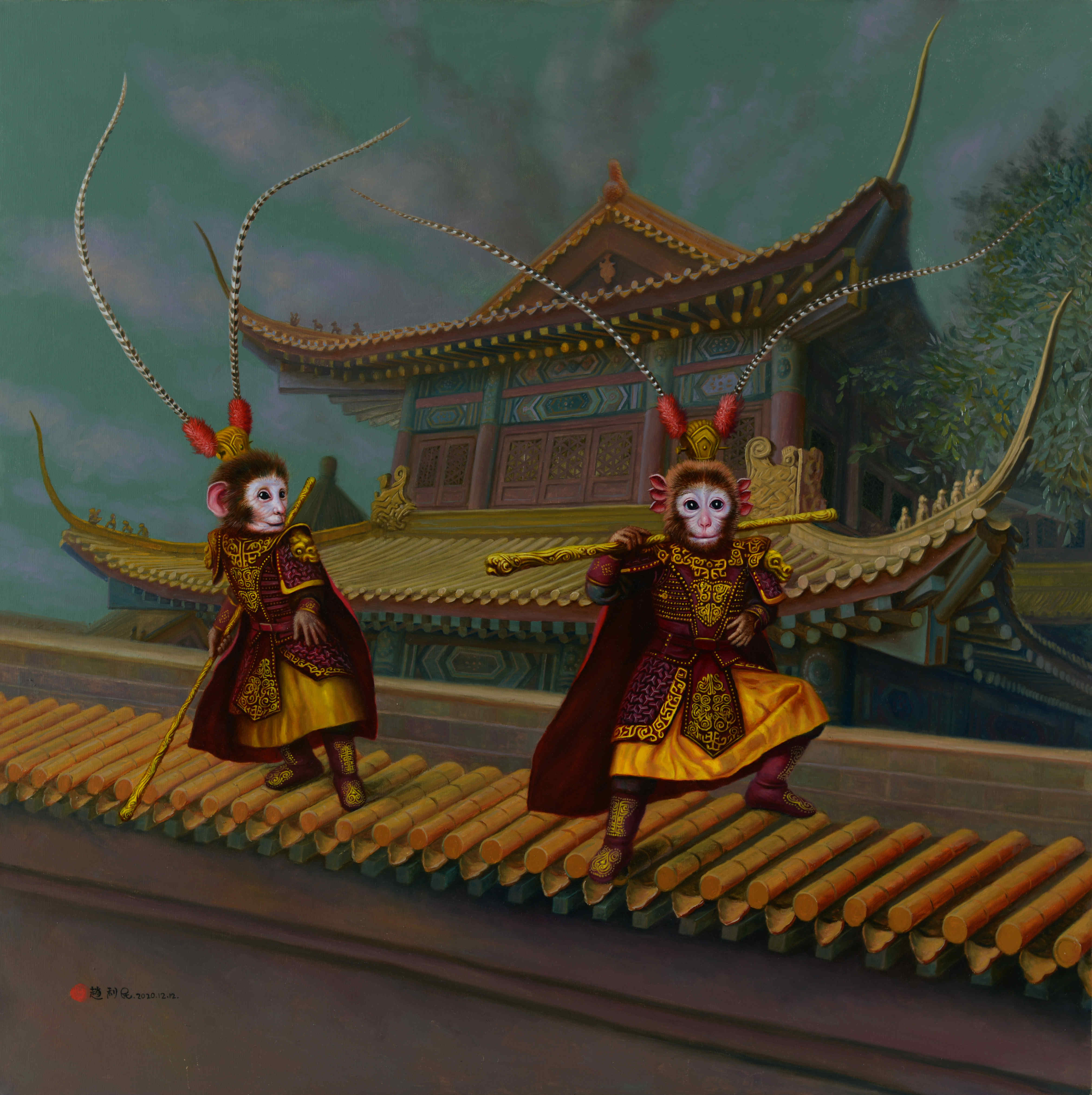 《五子登科》150×150布面油彩