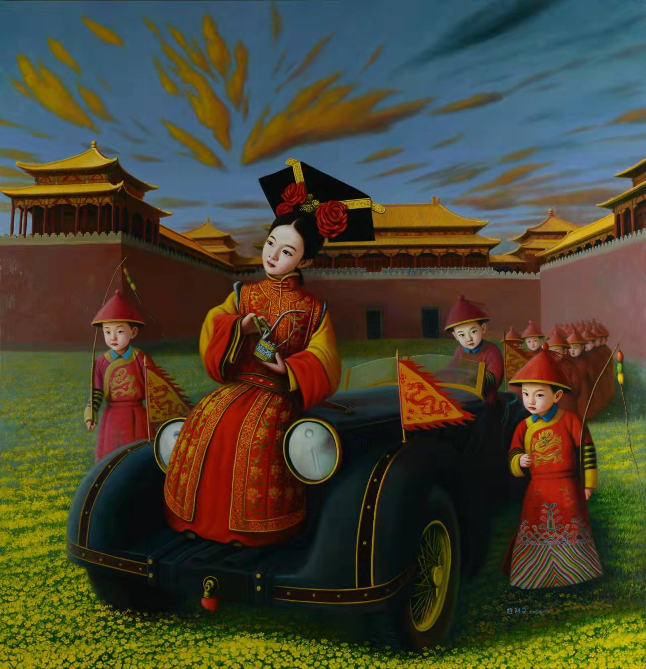 《太后与汽车》180×185布面油彩
