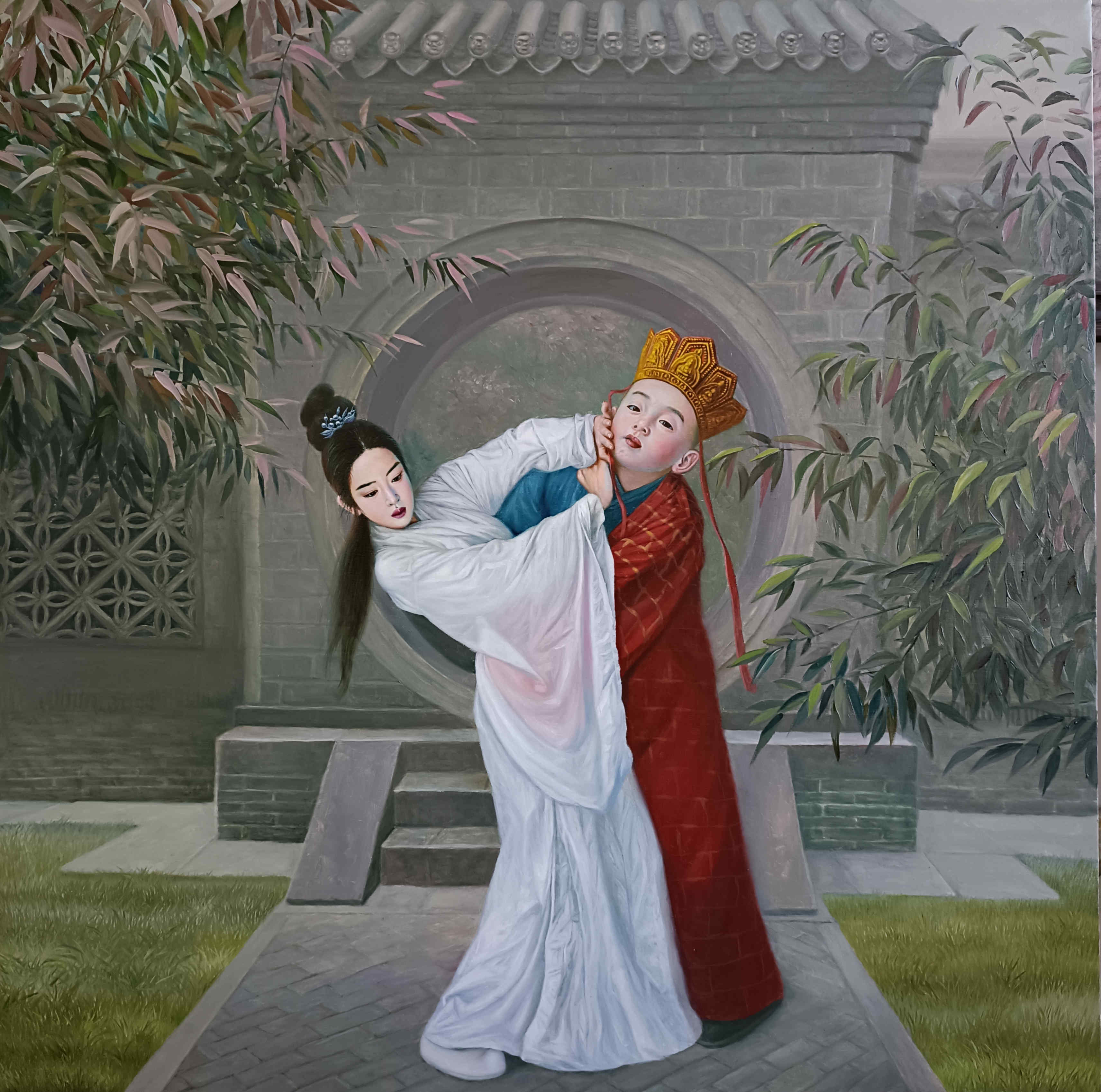 《宝黛初会》150×150 布面油彩
