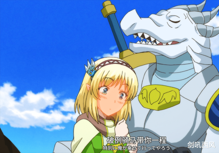 然后离开,前往龙宫城,寻找守护者之塔,路途因为觉得一个人旅行寂寞,就随同“闪耀剑士”的讨伐盗贼队伍一同前行,但因为“闪耀剑士”那突如其来的公主抱,让一众骑士团以为他们在交往——看来当初斯卡鲁格的担忧不无道理啊。